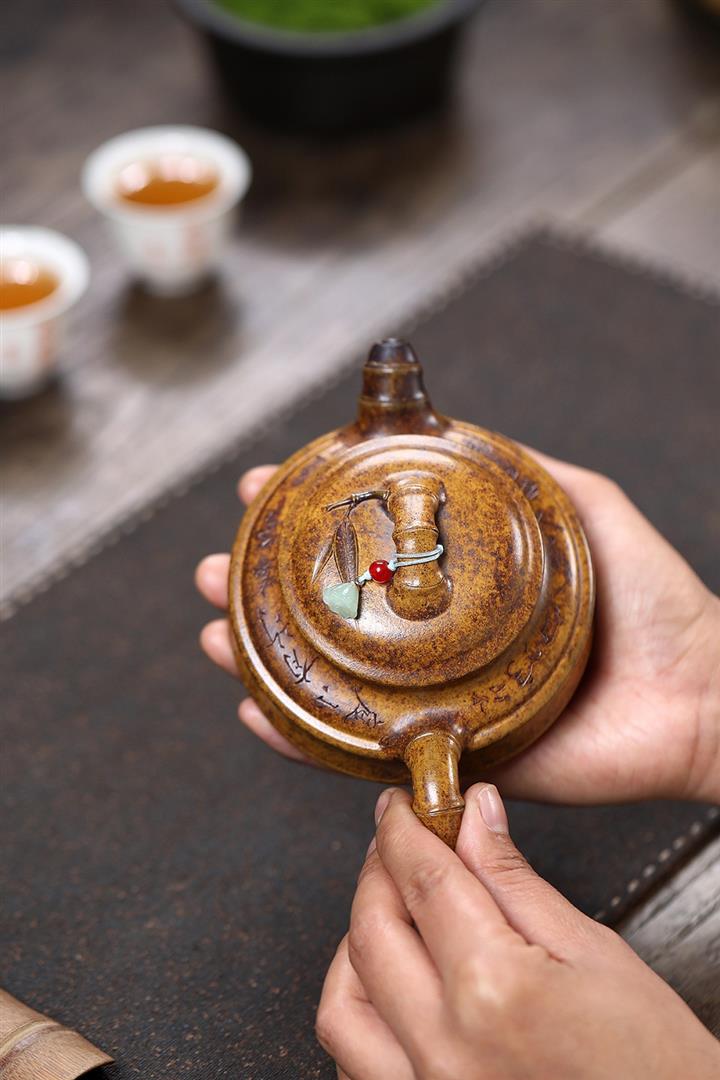 紫砂使用越久,壺身色澤越發光亮照人,氣韻溫雅。紫砂壺長久使用器身會因撫摸擦拭,變得越發溫潤光澤!