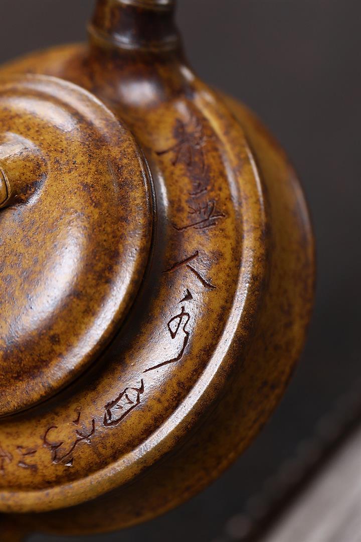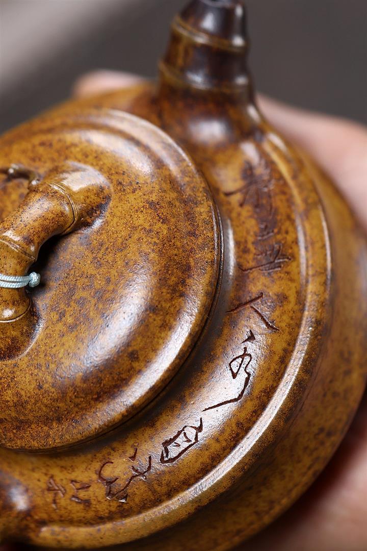 原礦龍骨金砂柴燒手工刻梅周盤茶壺POT6642