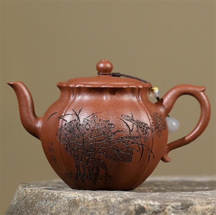 原礦降坡泥手工筋紋荷趣茶壺POT6646