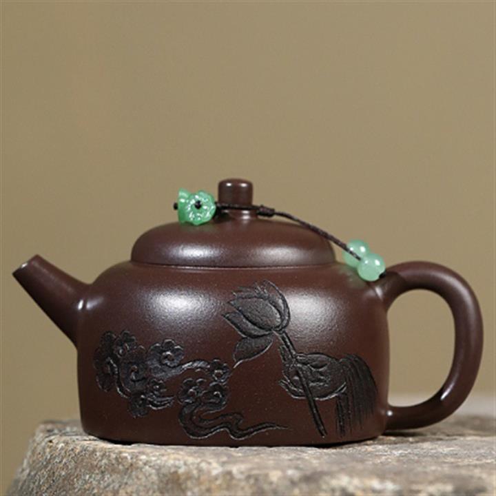 原礦紫玉金砂手工荷趣扁韻壺POT6643