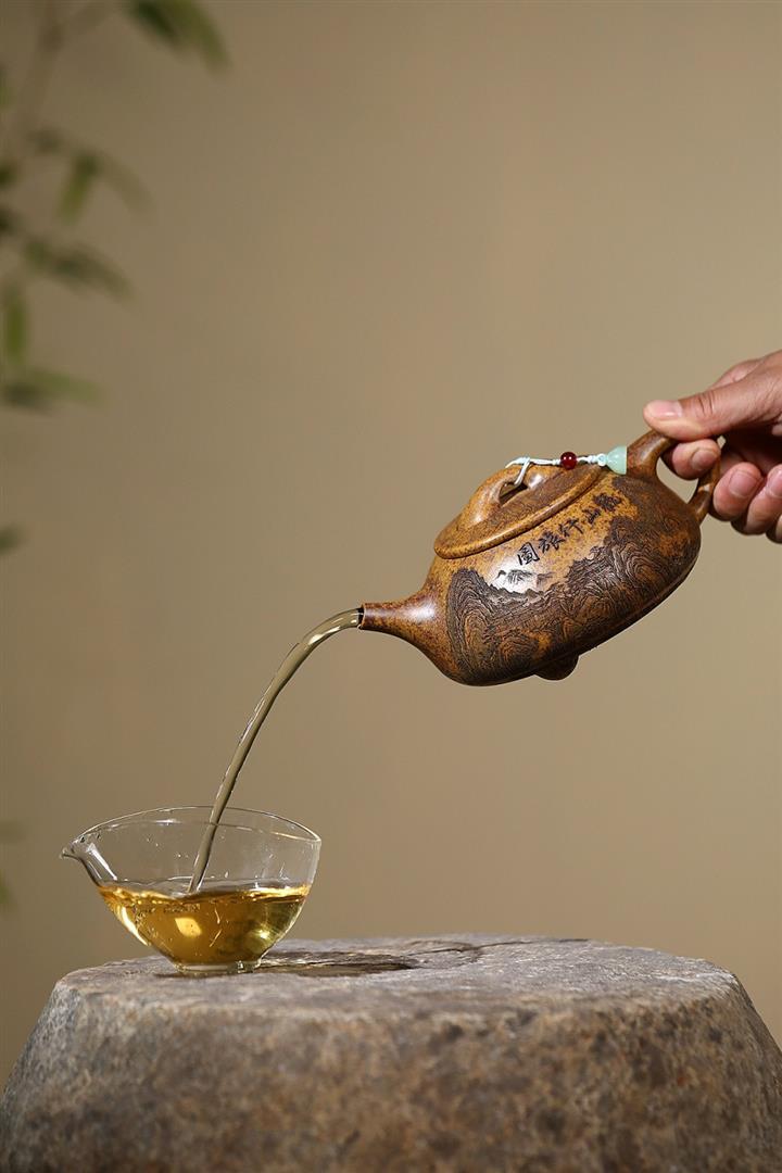 紫砂使用越久,壺身色澤越發光亮照人,氣韻溫雅。紫砂壺長久使用器身會因撫摸擦拭,變得越發溫潤光澤!