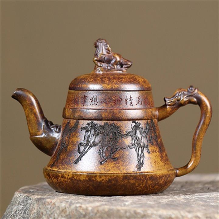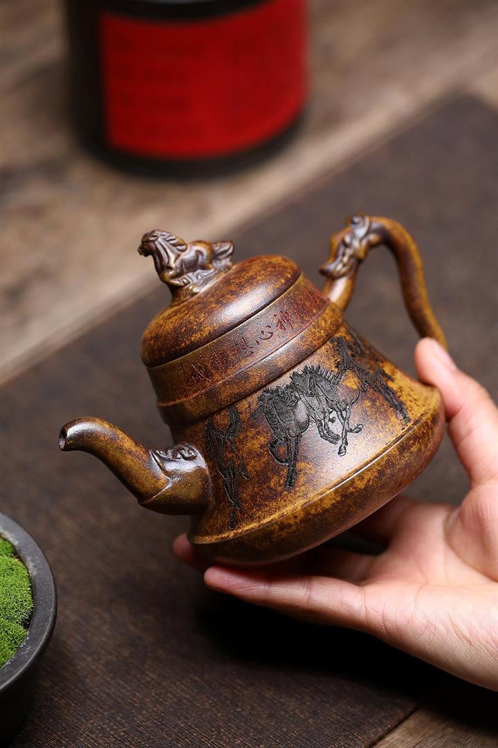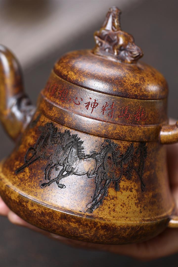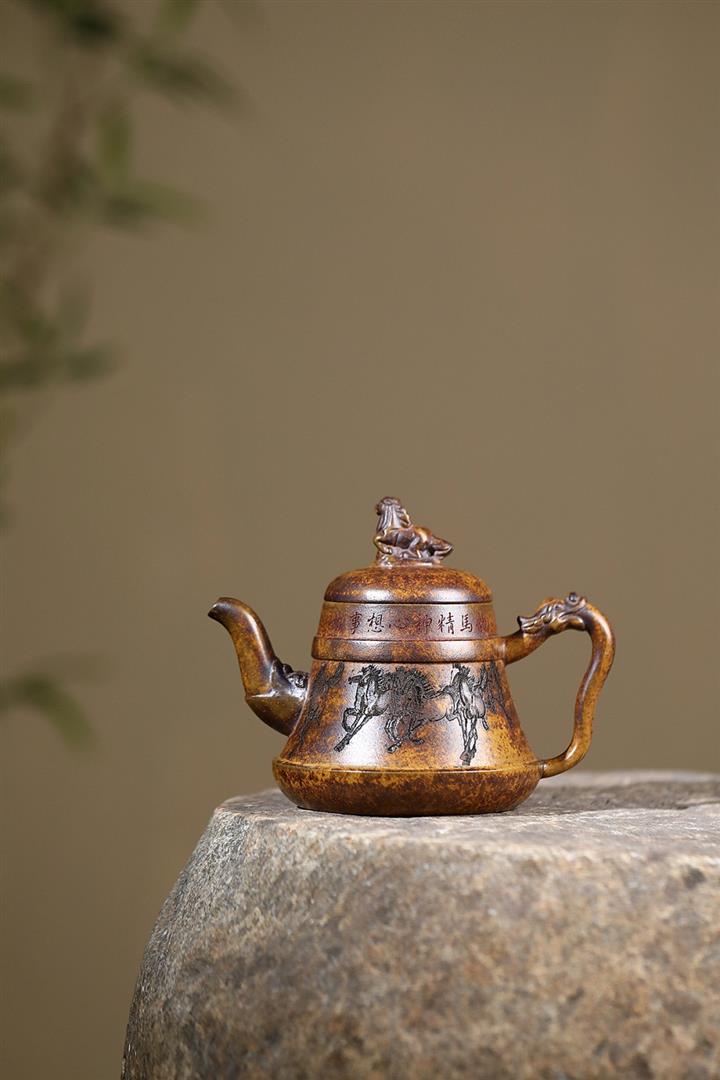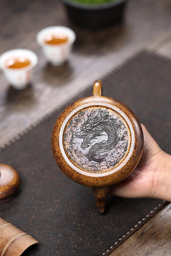原礦龍骨金砂柴燒手工刻梅周盤茶壺POT6642