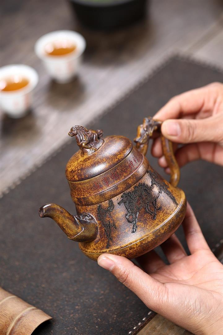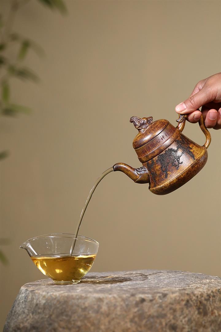 紫砂使用越久,壺身色澤越發光亮照人,氣韻溫雅。紫砂壺長久使用器身會因撫摸擦拭,變得越發溫潤光澤!