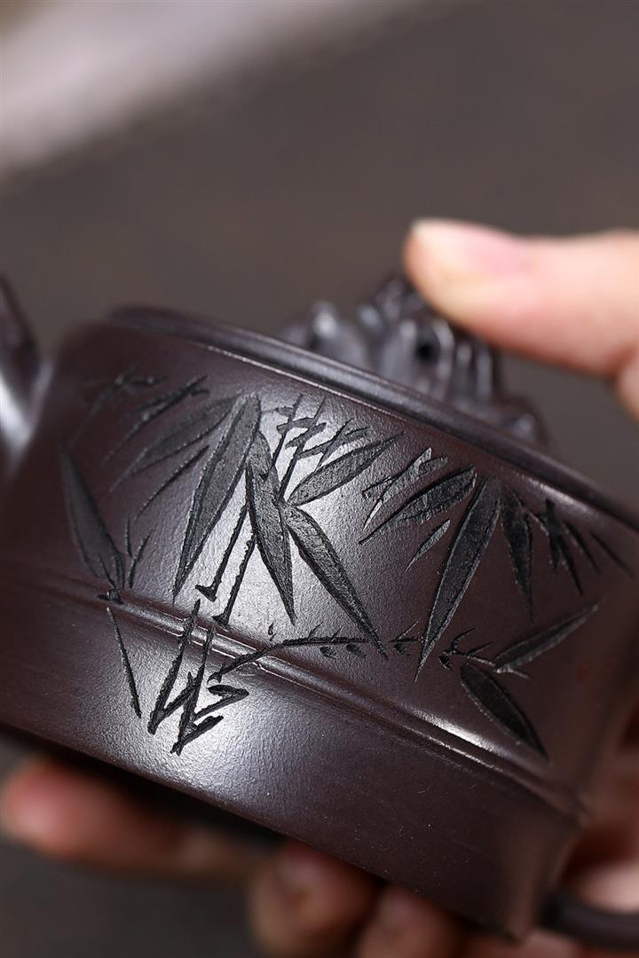 原礦老紫泥手工祥雲禪心德鐘茶壺POT6647