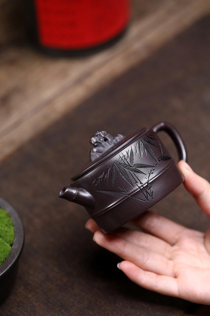 紫砂使用越久,壺身色澤越發光亮照人,氣韻溫雅。紫砂壺長久使用器身會因撫摸擦拭,變得越發溫潤光澤!