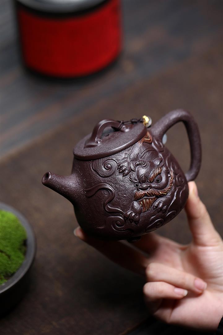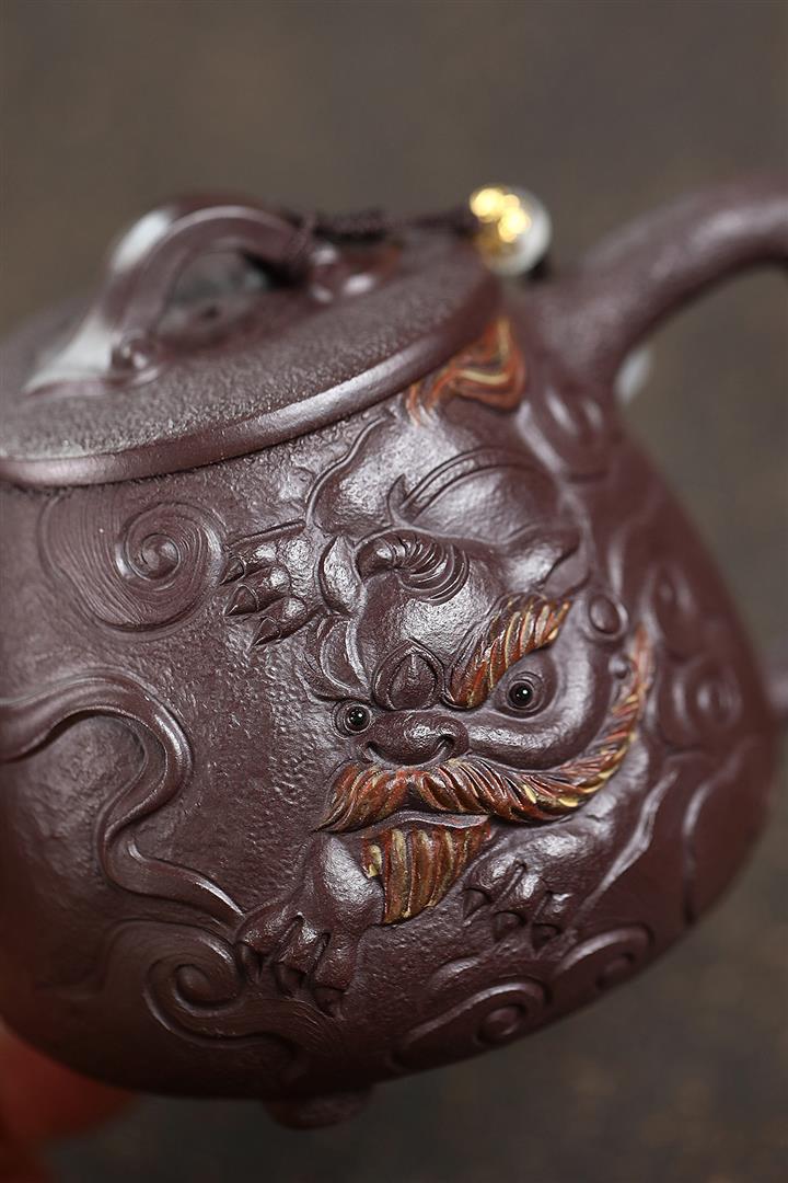 原礦龍骨金砂手工金獅如意壺POT6653