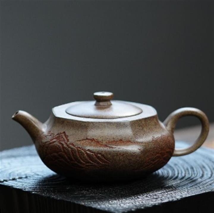 原礦雲霧沈香泥手工六方如意茶壺POT6663