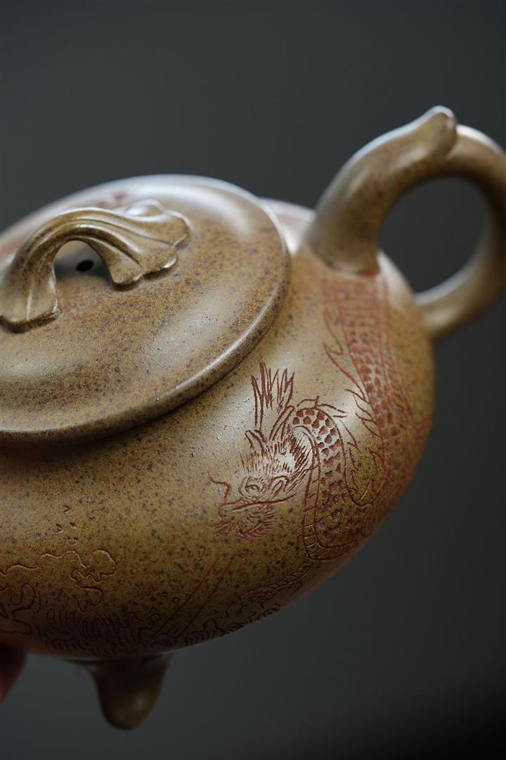 原礦雲霧沈香泥三足遊龍茶壺POT6665