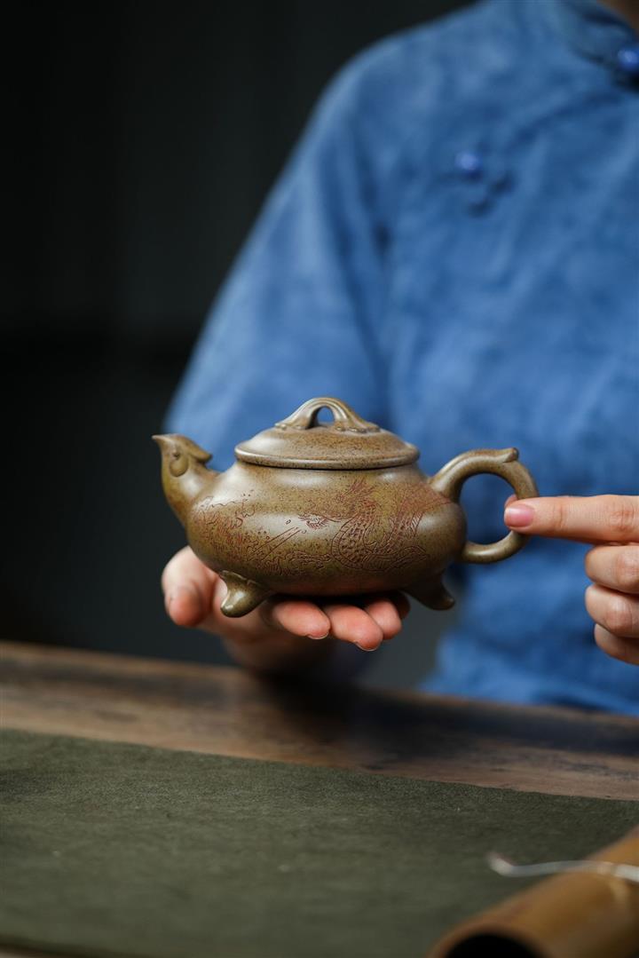 原礦墨綠泥手工蛟龍戲珠供春壺POT6674