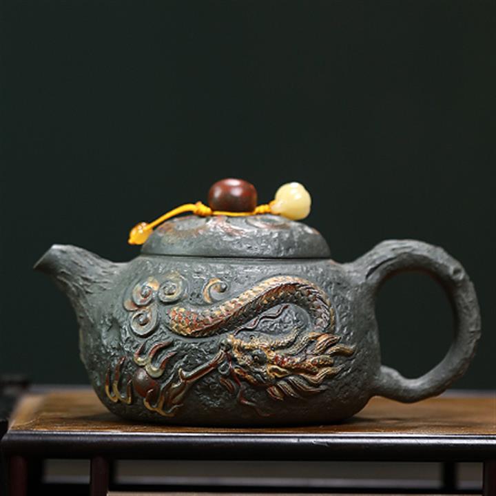 原礦墨綠泥手工祥麟威風漢瓦茶壺POT6672