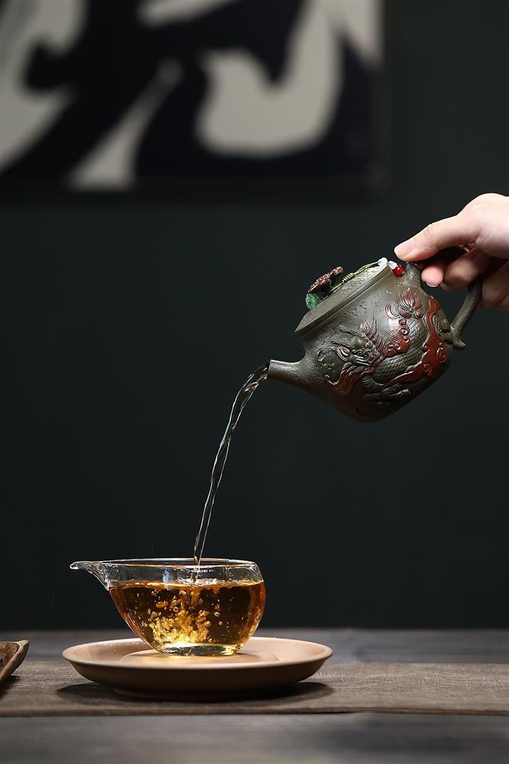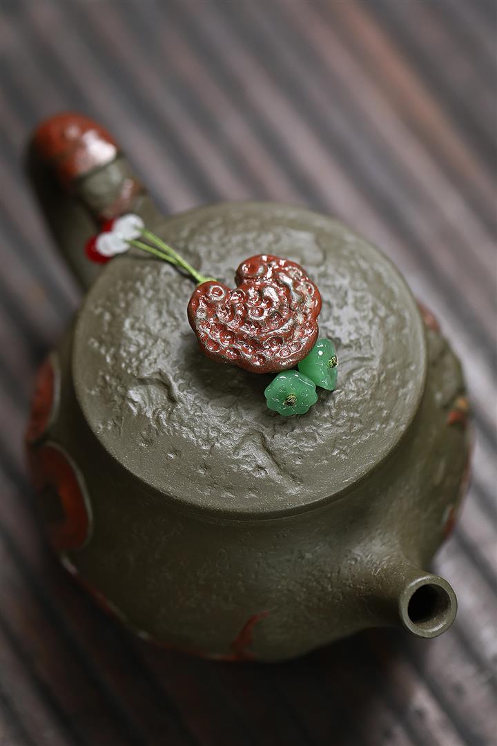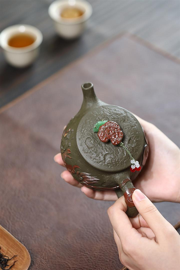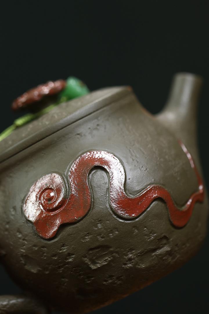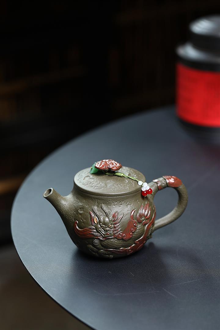 原礦墨綠泥手工蛟龍戲珠供春壺POT6674