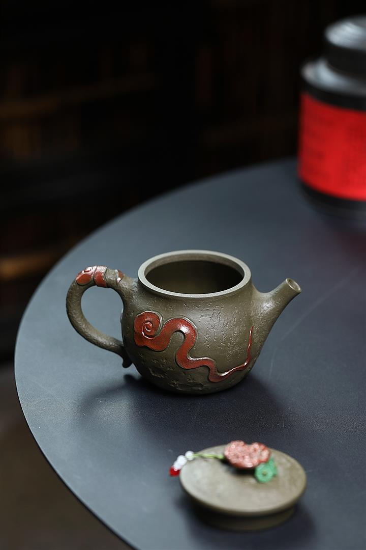 原礦墨綠泥手工祥麟威風漢瓦茶壺POT6672