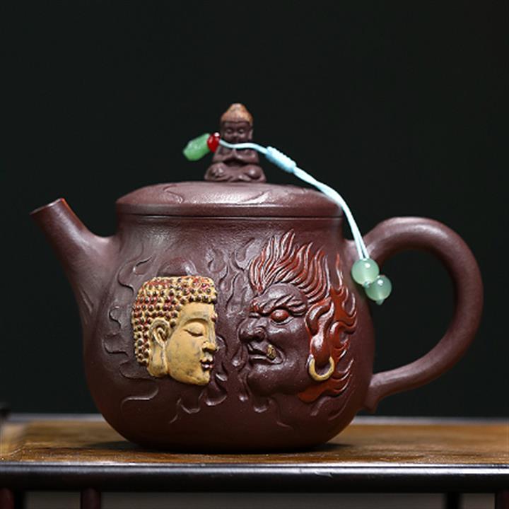 原礦老紫泥手工即心即佛漢瓦茶壺POT6678
