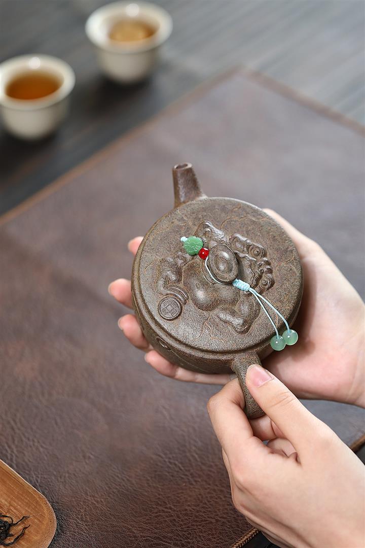 原礦老紫泥手工麟止呈祥茶壺POT6677