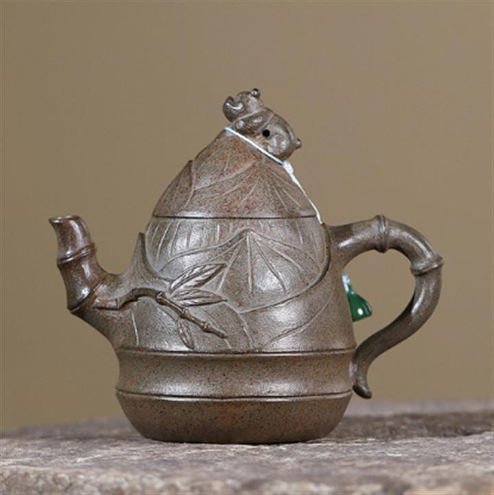 原礦鄒皮朱泥手工琺瑯彩劍流德鐘茶壺POT6682