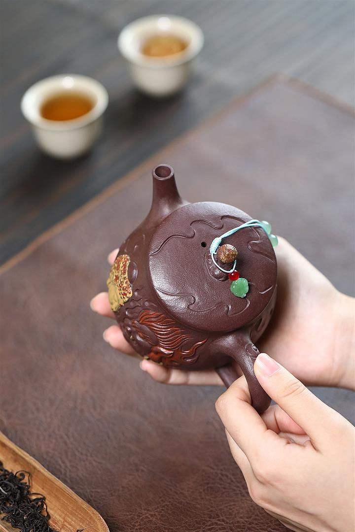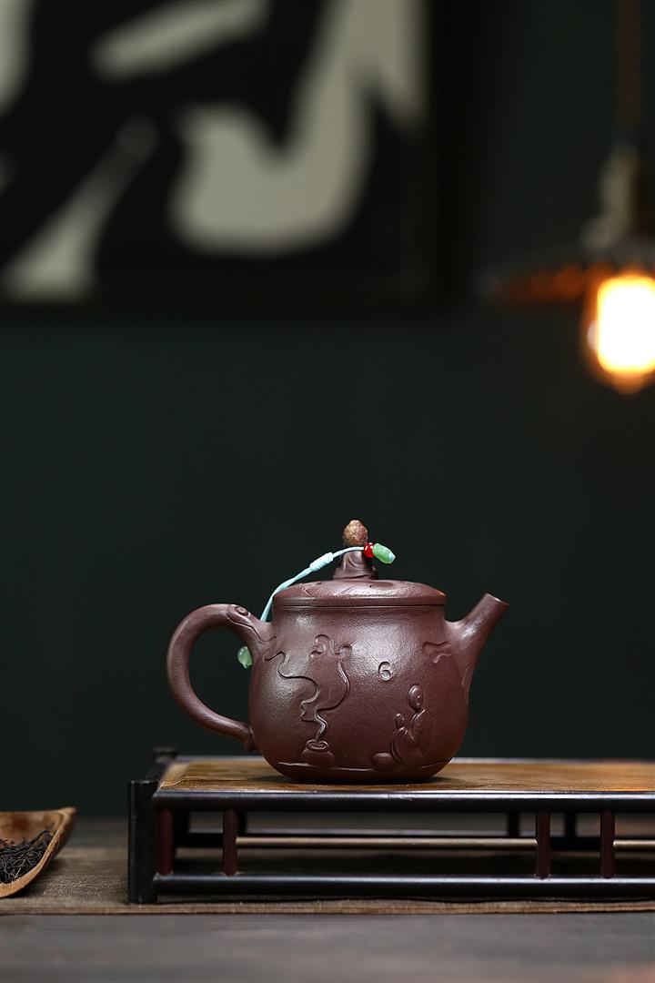 原礦古銅烏泥手工龍紋德鐘茶壺POT6687