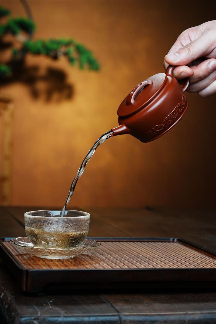 原礦赤龍血砂手工彩繪三足橋瓢茶具POT6688