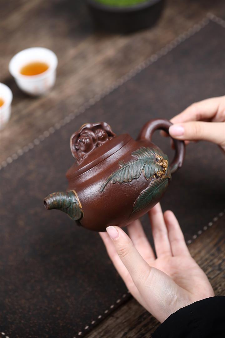 紫砂使用越久,壺身色澤越發光亮照人,氣韻溫雅。紫砂壺長久使用器身會因撫摸擦拭,變得越發溫潤光澤!