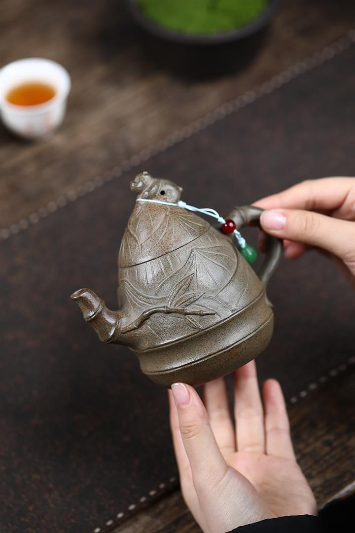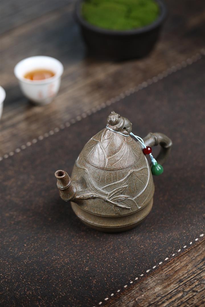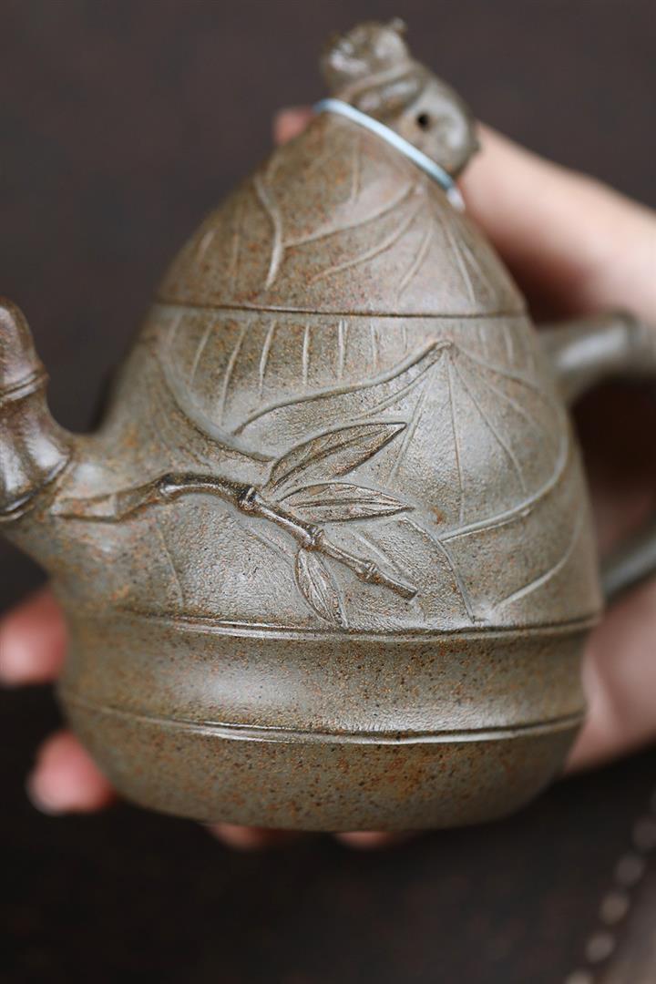 原礦青灰段手工竹筍茶壺POT6684