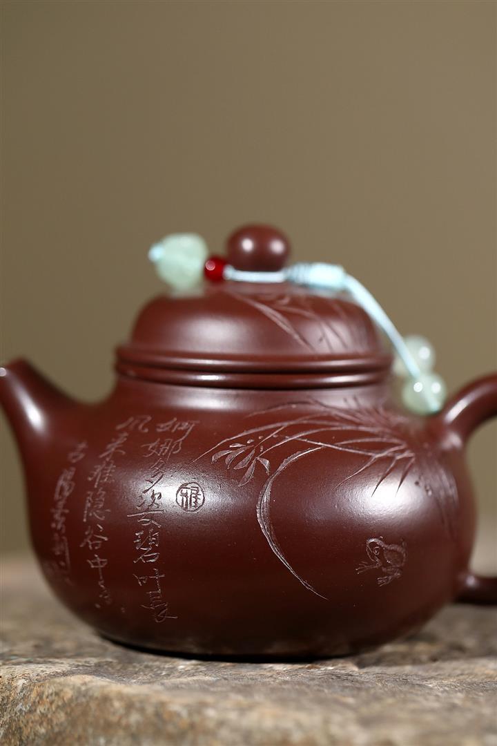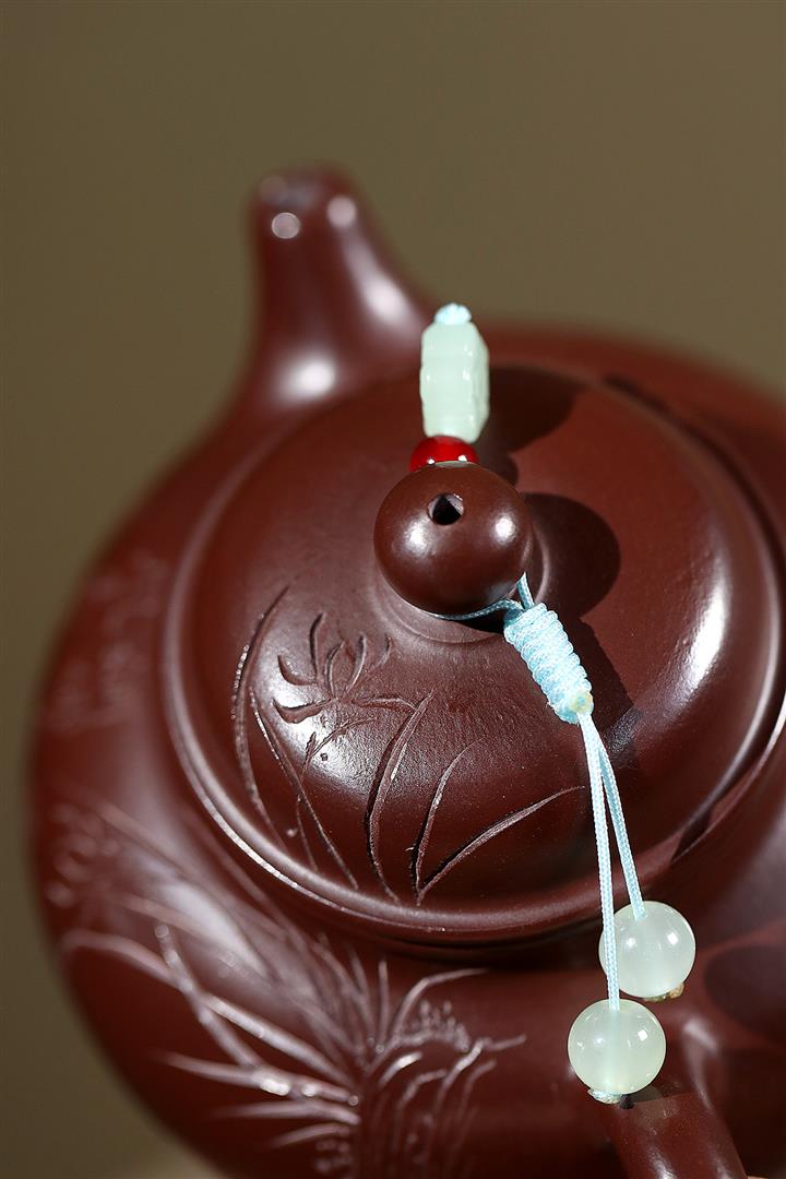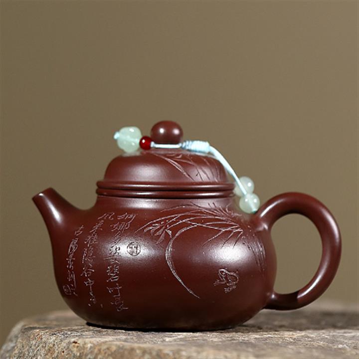 原礦紫朱泥手工刻繪蘭花容天茶壺POT6691