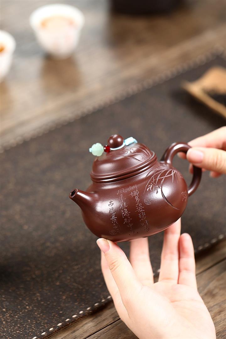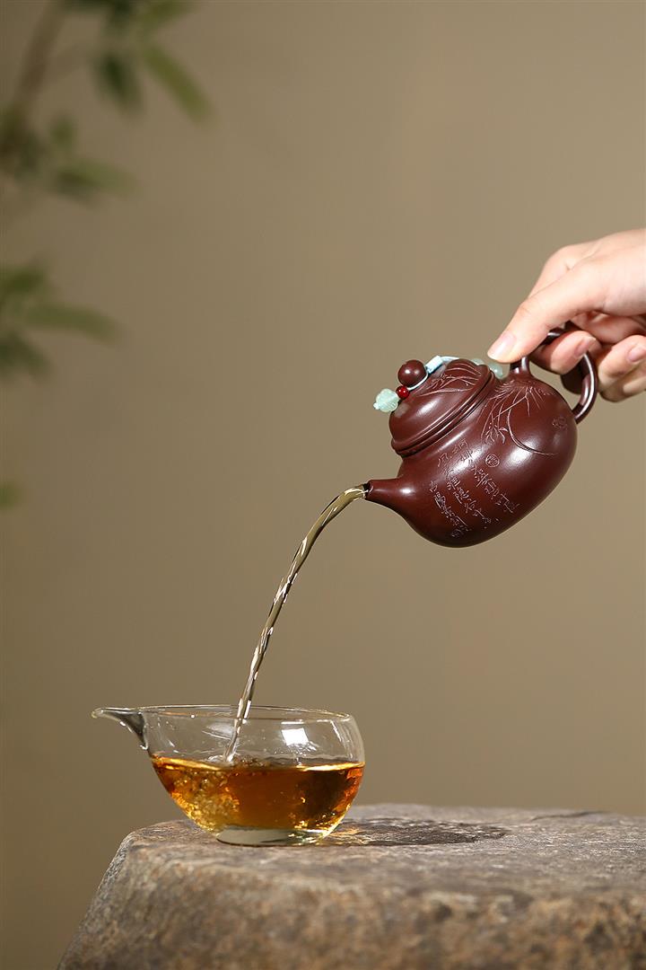紫砂使用越久,壺身色澤越發光亮照人,氣韻溫雅。紫砂壺長久使用器身會因撫摸擦拭,變得越發溫潤光澤!