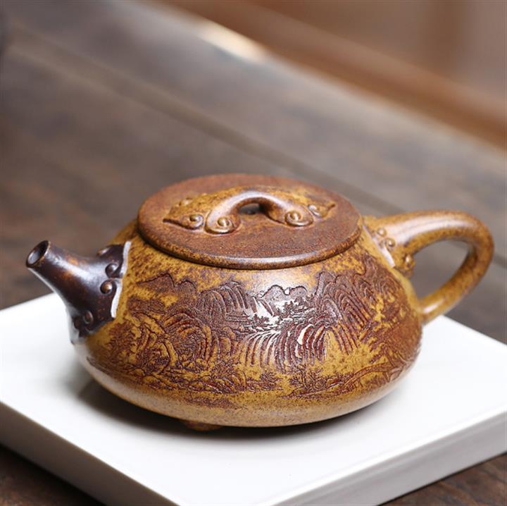 原礦龍骨金砂龍窯柴燒如意石瓢紫砂壺POT6701
