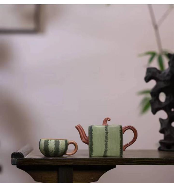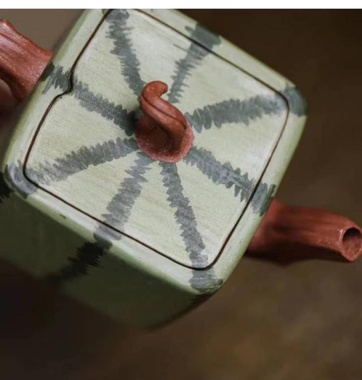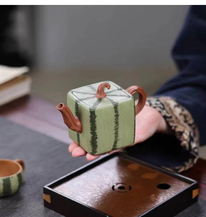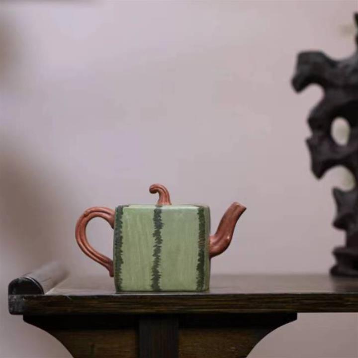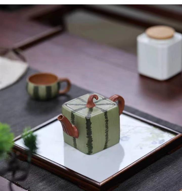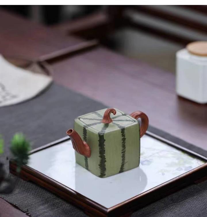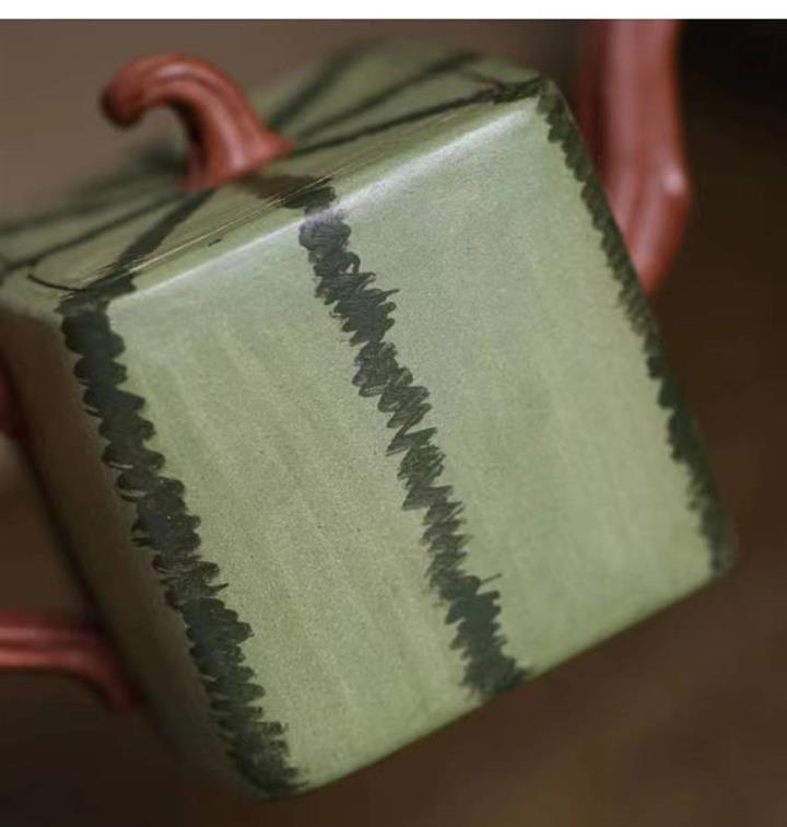 原礦段泥粉漿全手工薄胎方西瓜紫砂壺POT6699