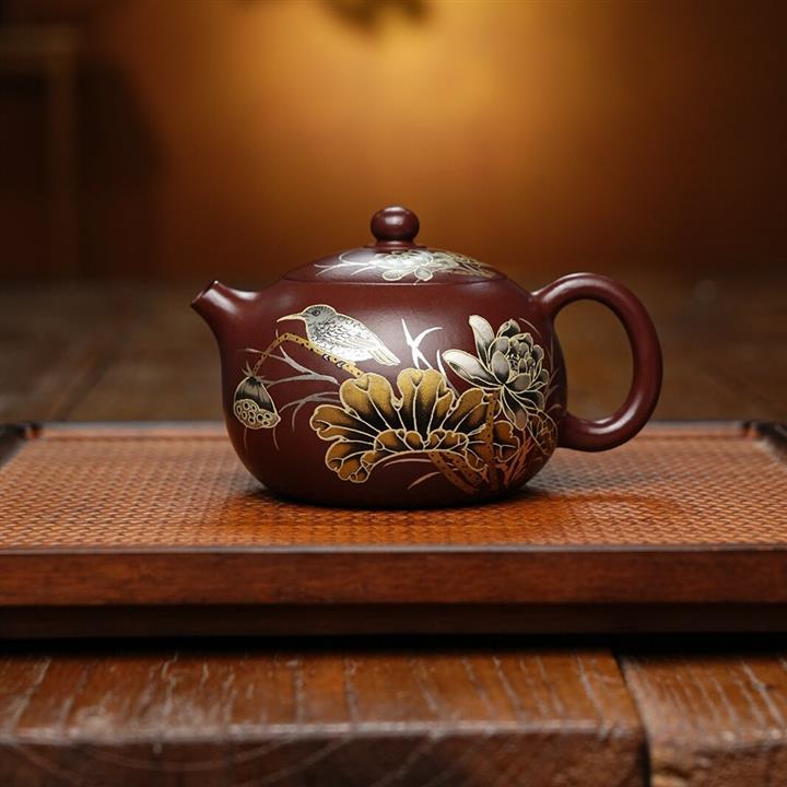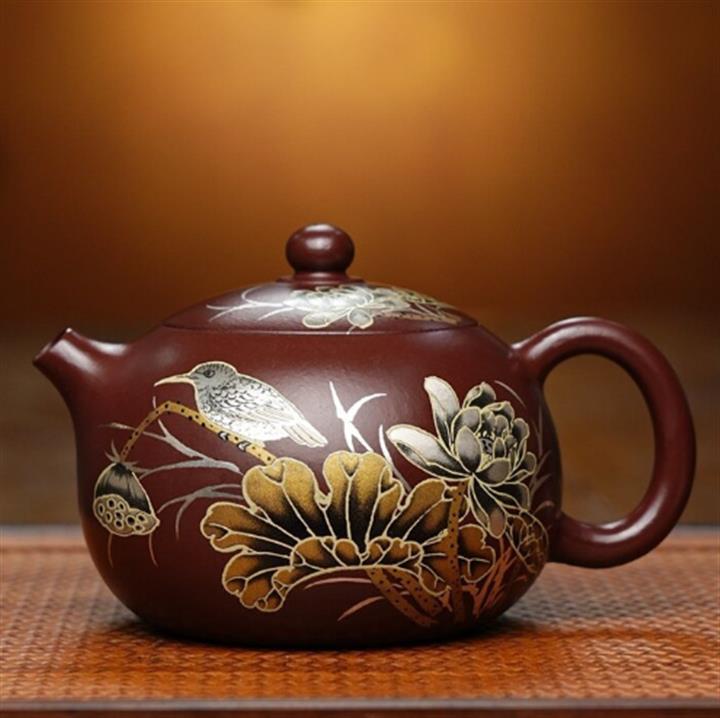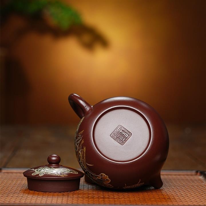 原礦石黃泥手工鎏金寒江紫砂壺POT6711
