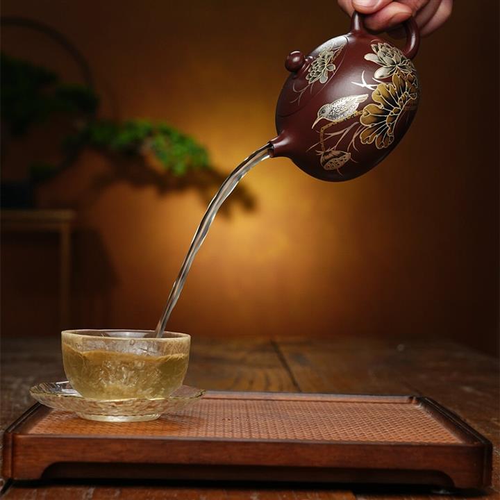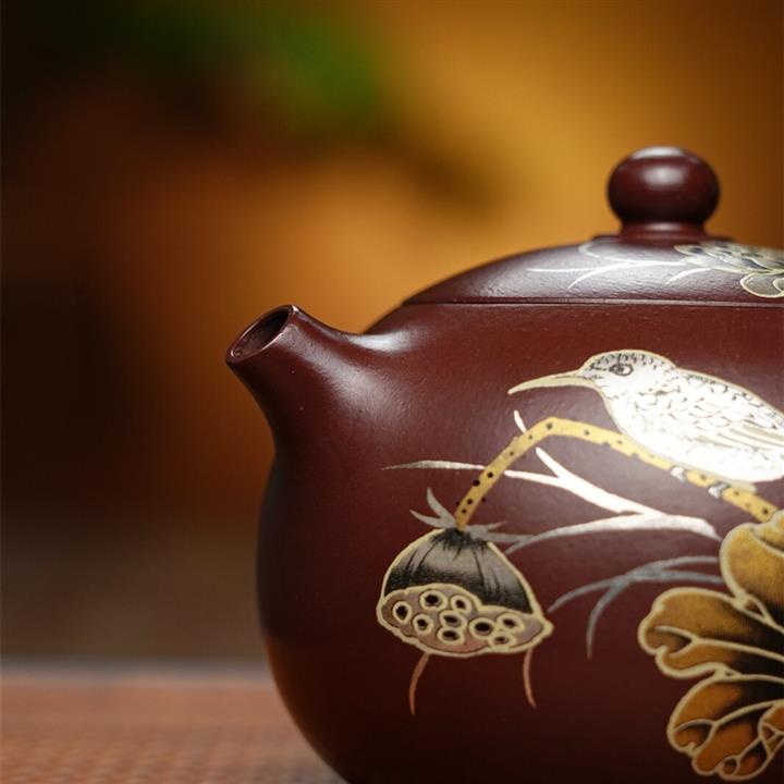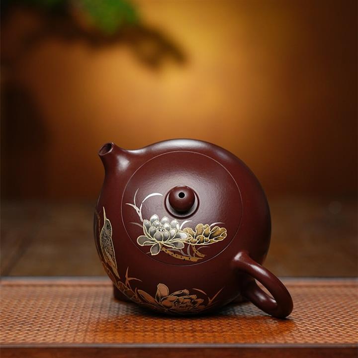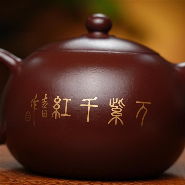 原礦紫泥手工鎏金德鐘茶壺POT6710