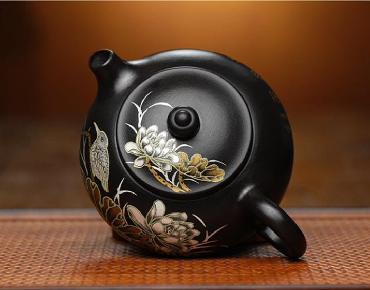 原礦石黃泥手工鎏金寒江紫砂壺POT6711