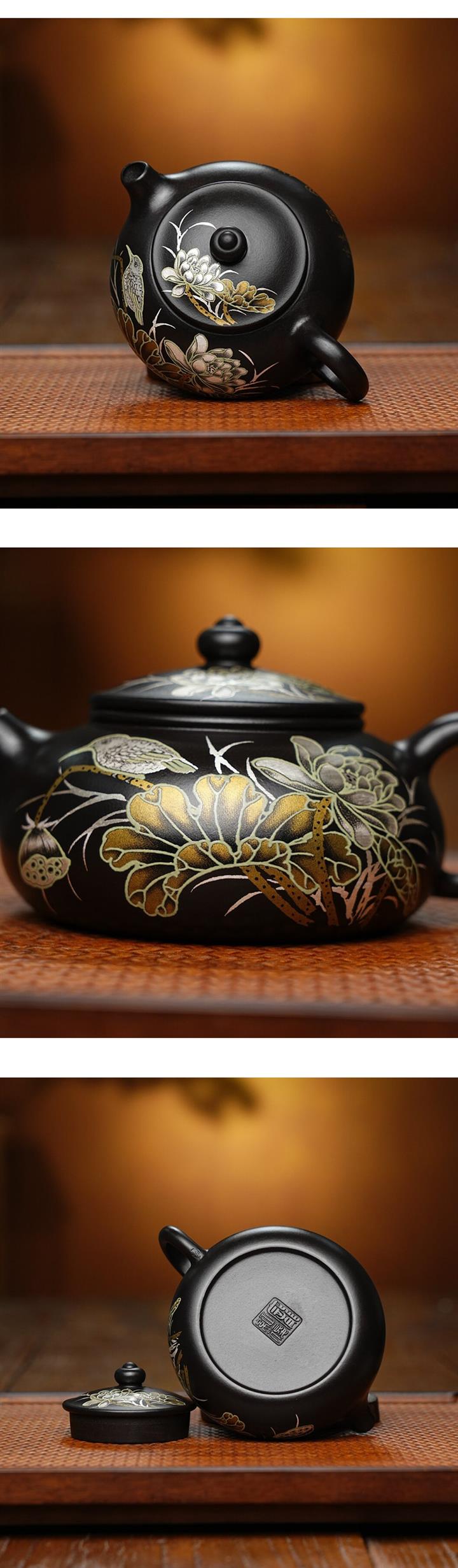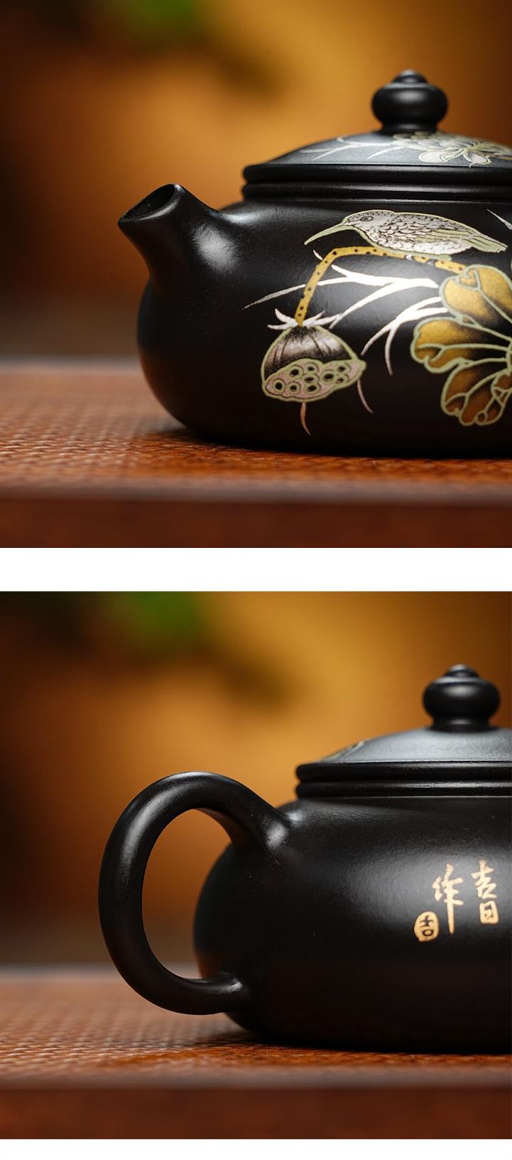 【簡介】此壺比例勻稱,精巧可愛,色澤明暗有度,古雅大氣,在泥色和勾勒效果上更顯清素典雅,整器渾圓柔美,高雅光潤,註重實用性和藝術性,淩厲飄逸,自成一派,收藏價值倍增。耳型壺把,拿捏舒適,精製外觀,簡約時尚,溫暖隨行,壺到「福」到,你值得擁有。