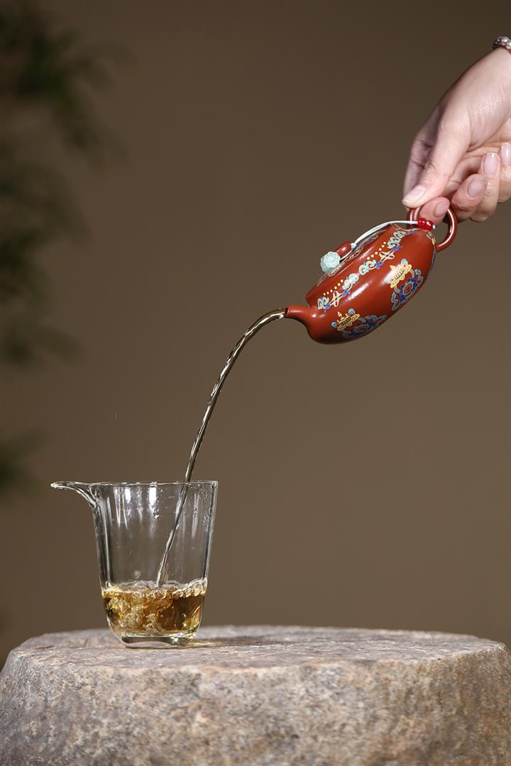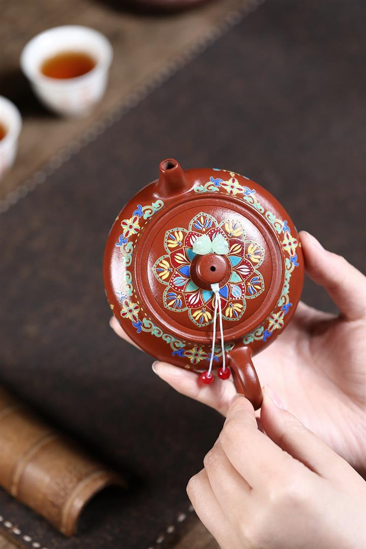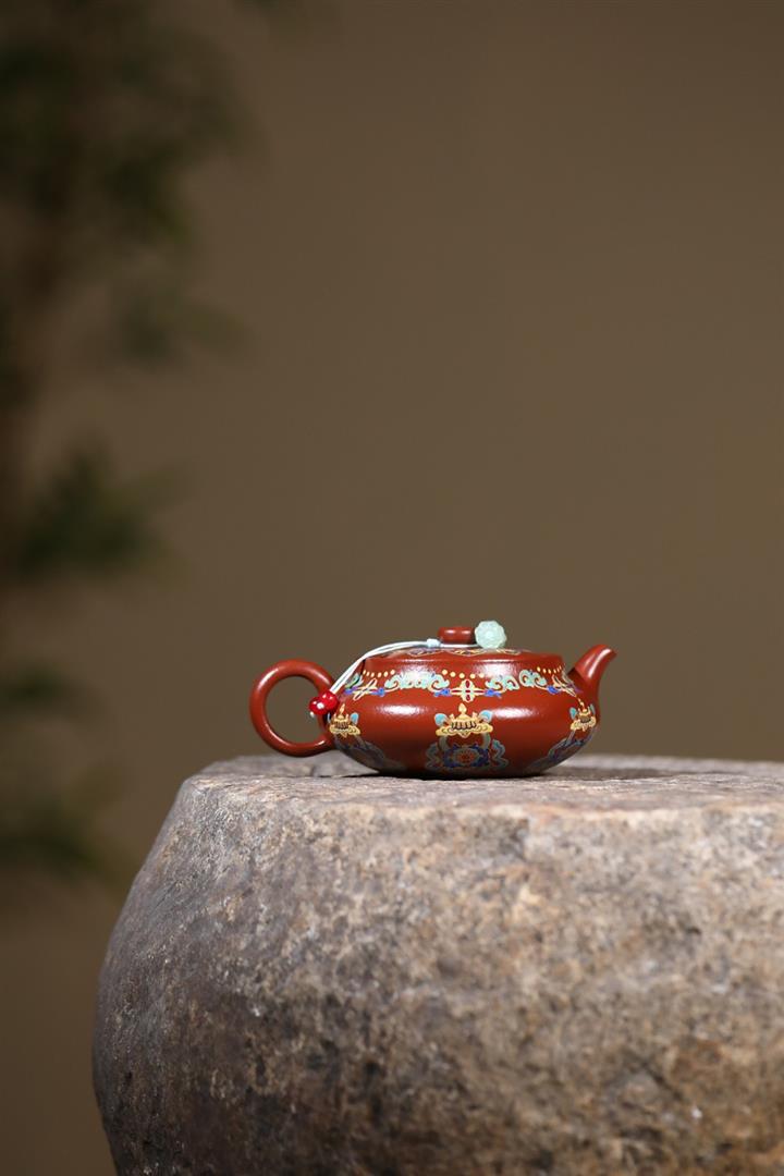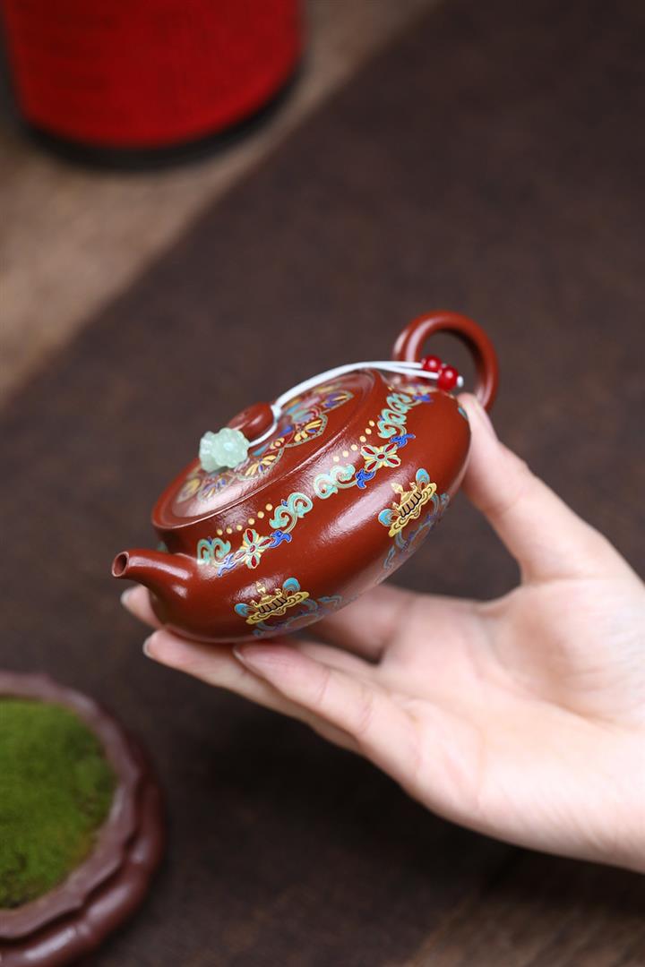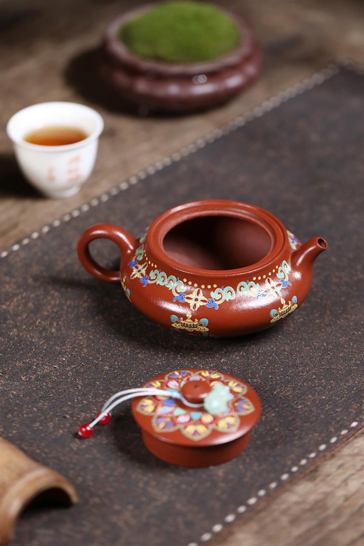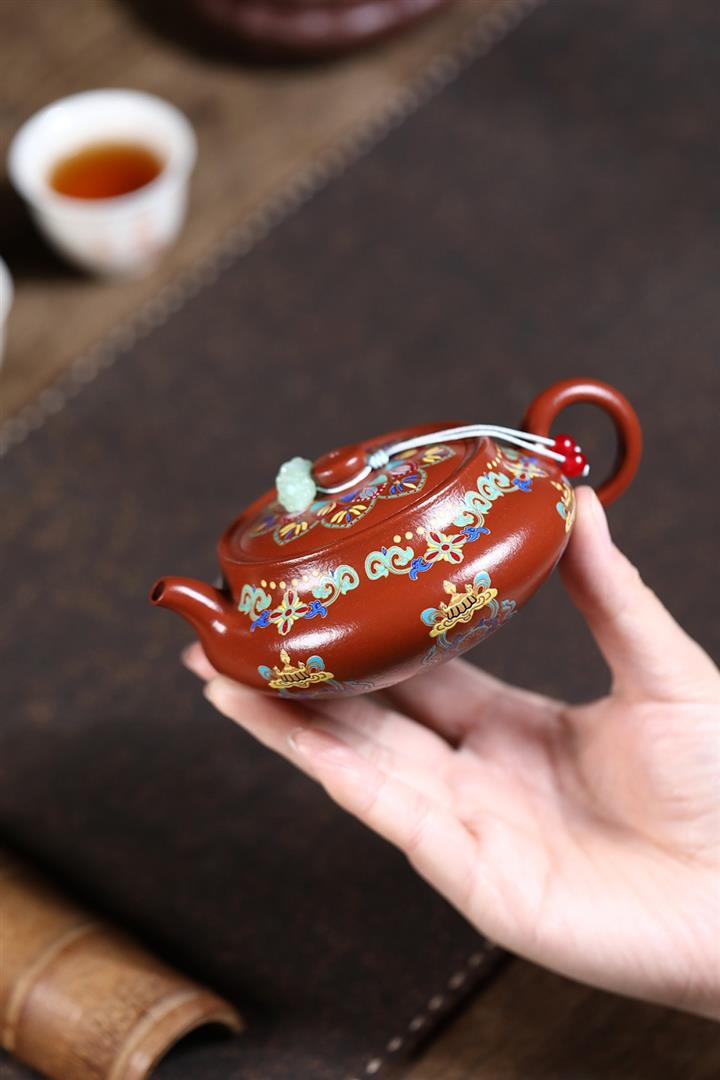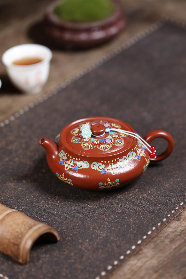 原礦小煤窯朱泥手工琺瑯彩桑盤壺POT6712