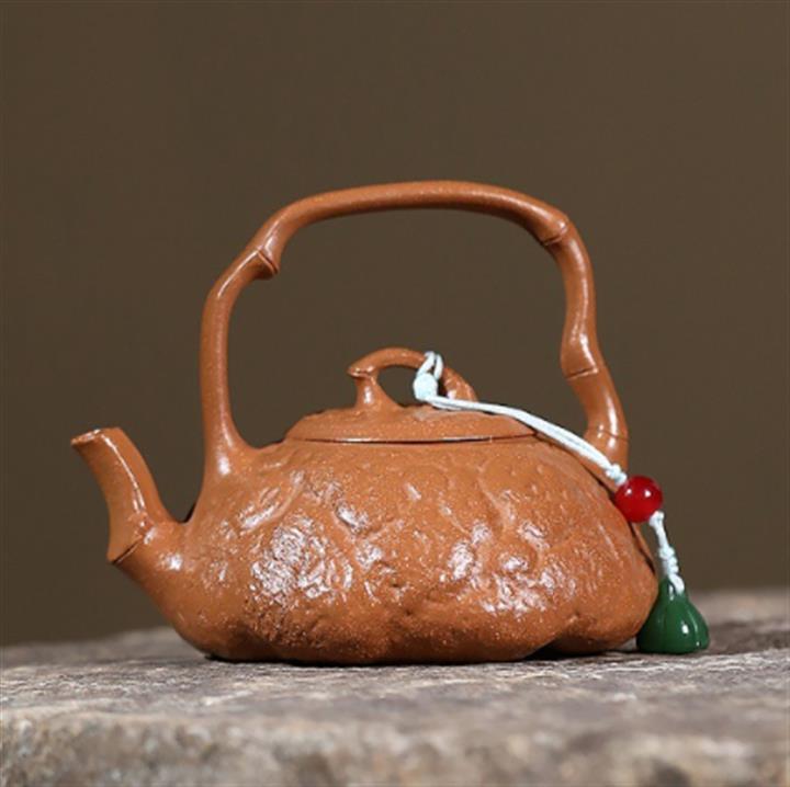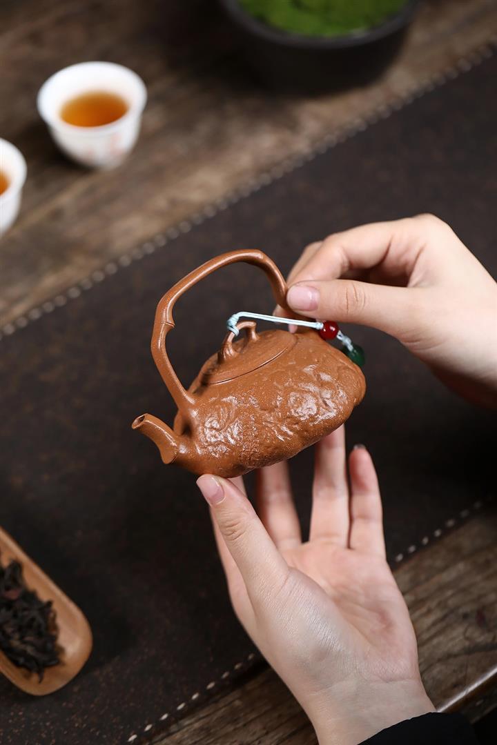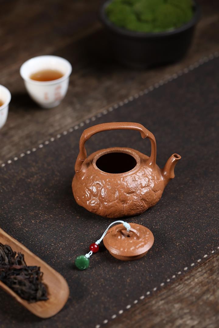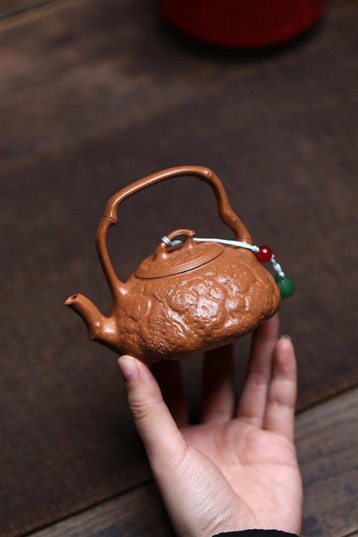 原礦墨綠泥手工滿刻提梁壺POT6720
