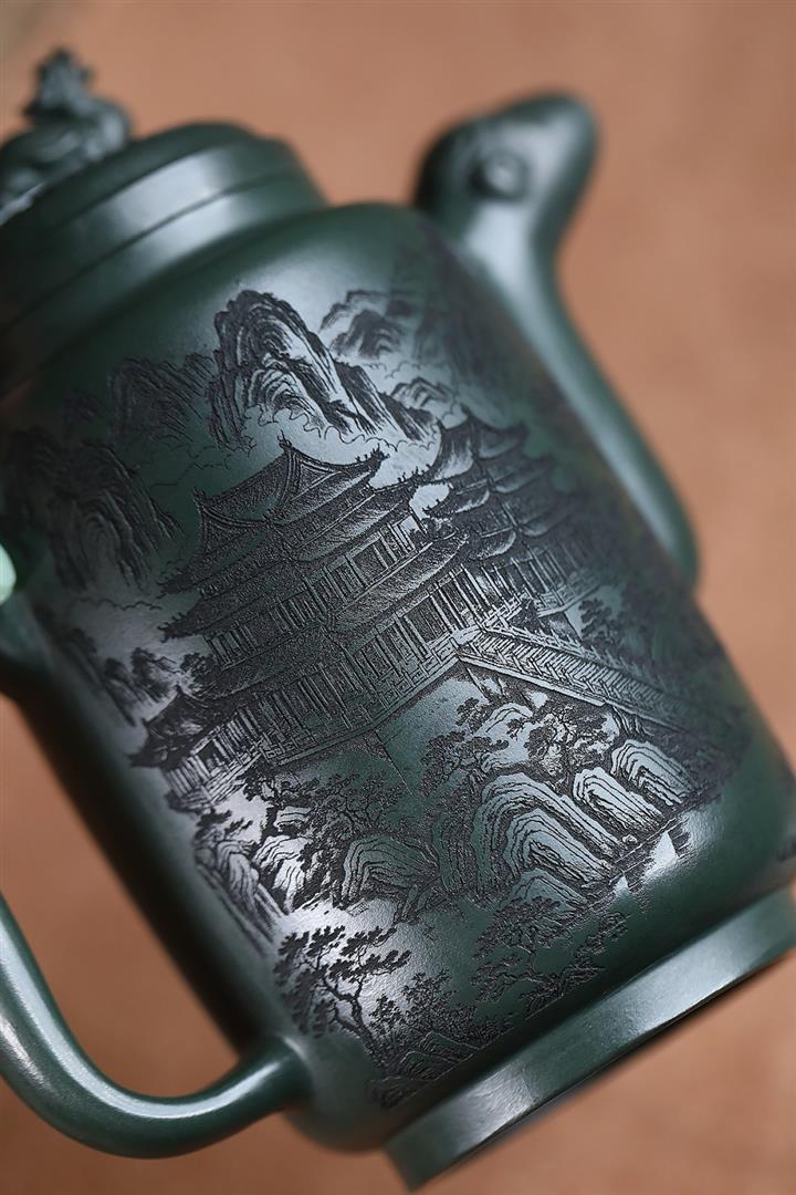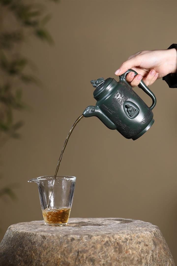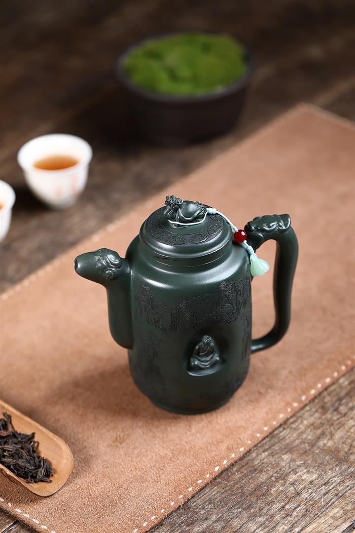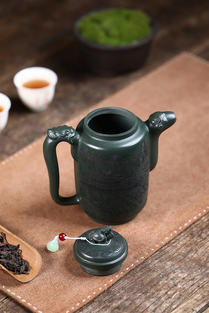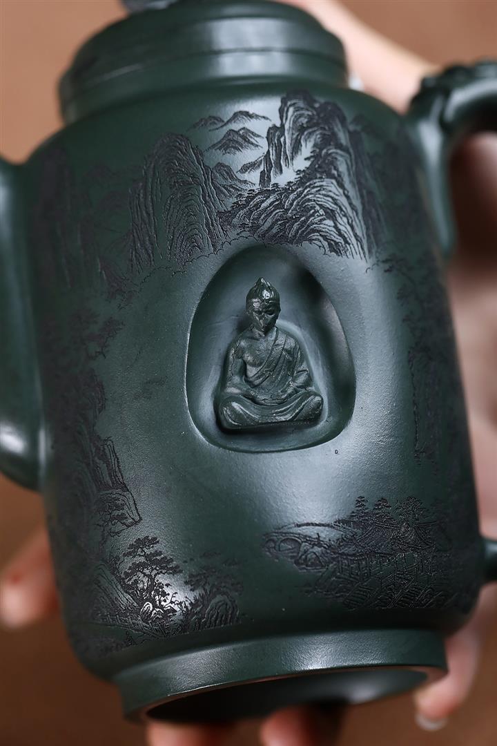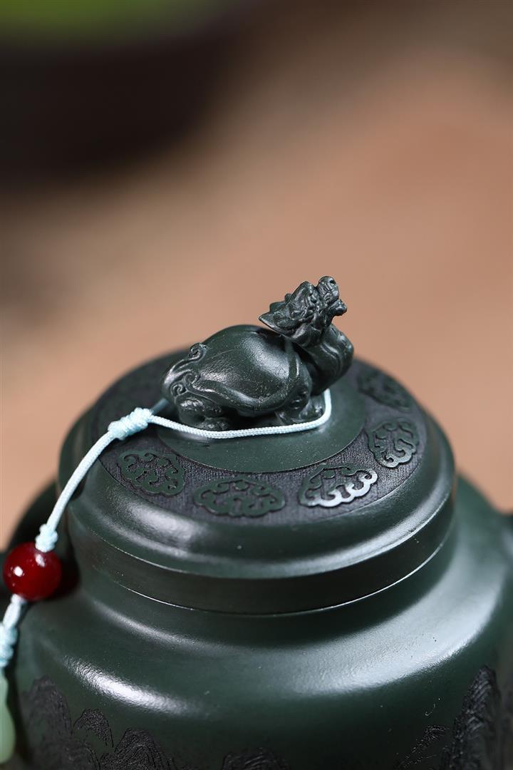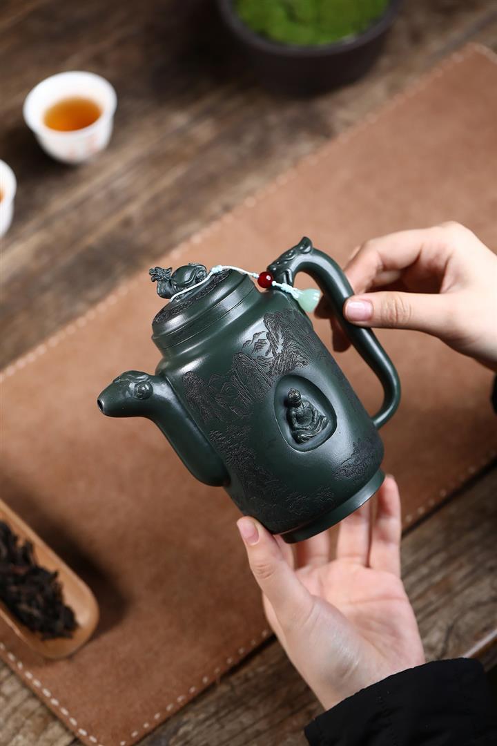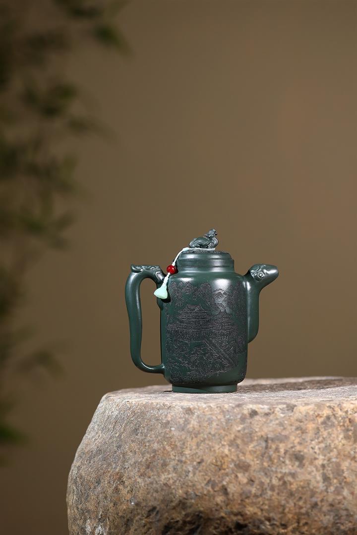 原礦墨綠泥手工滿刻汲直壺POT6721