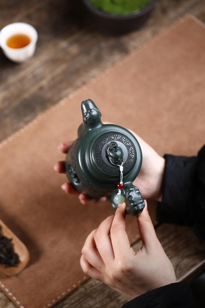 原礦綠泥手工龍紋西施茶壺POT6723
