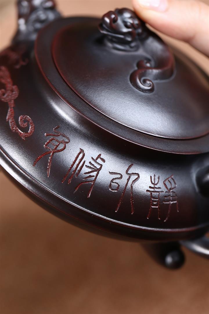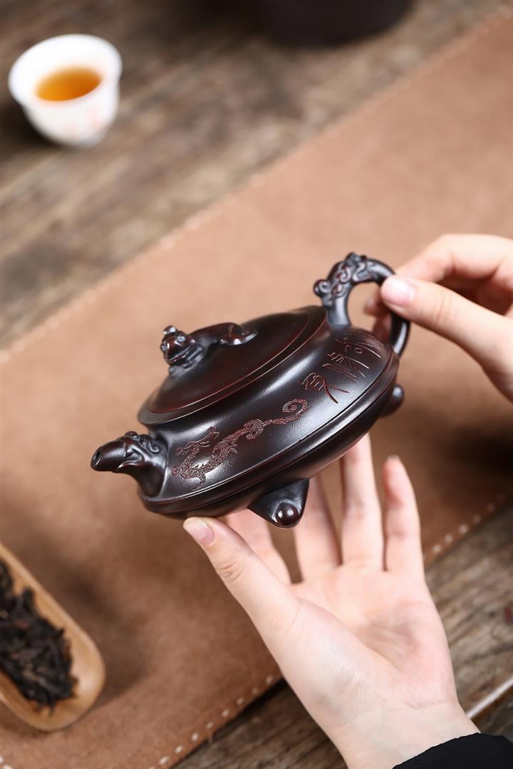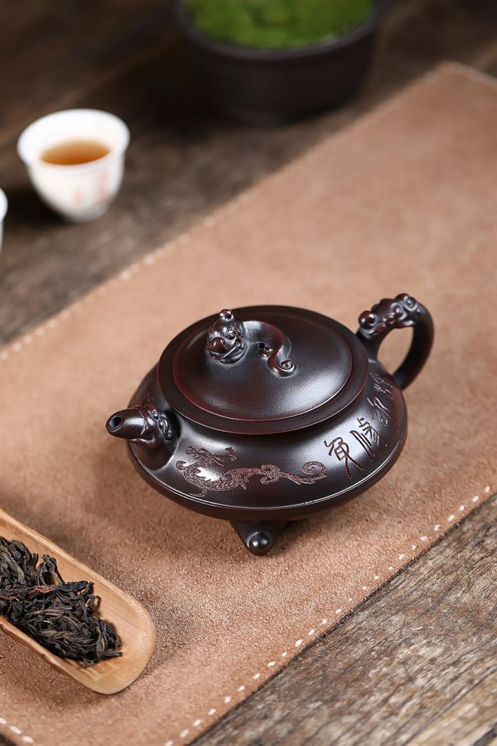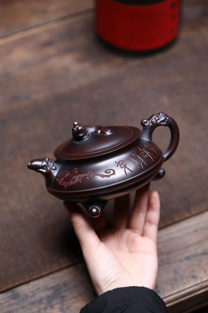 原礦古銅烏泥手工三足龍鼎茶壺POT6722