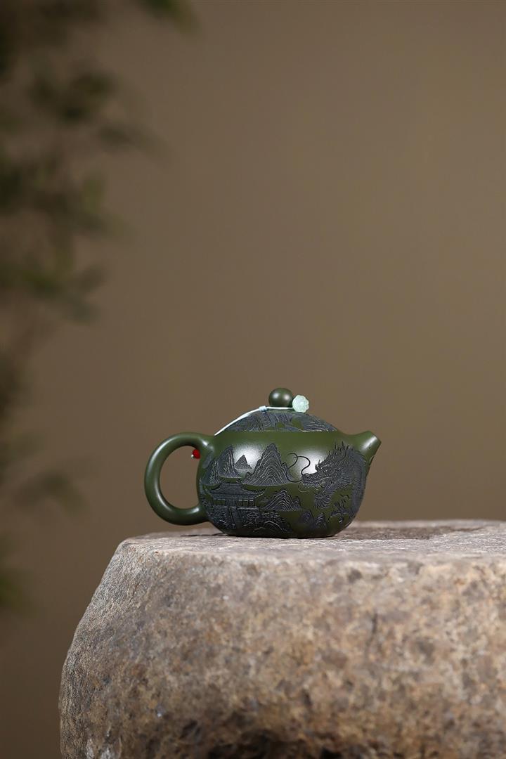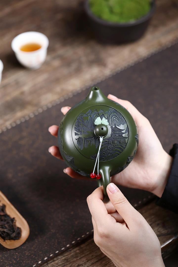 【簡介】此壺比例勻稱,精巧可愛,色澤明暗有度,古雅大氣,在泥色和勾勒效果上更顯清素典雅,整器渾圓柔美,高雅光潤,註重實用性和藝術性,淩厲飄逸,自成一派,收藏價值倍增。耳型壺把,拿捏舒適,精製外觀,簡約時尚,溫暖隨行,壺到「福」到,你值得擁有。