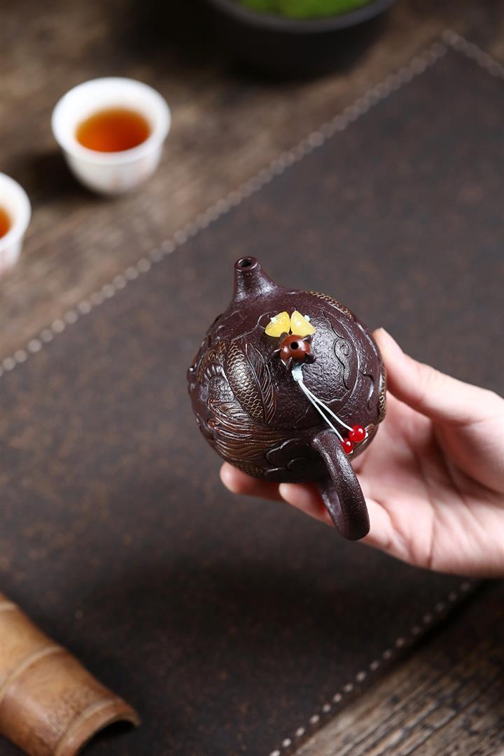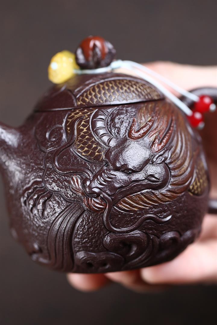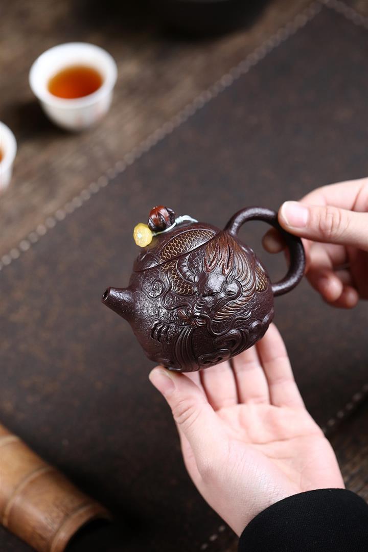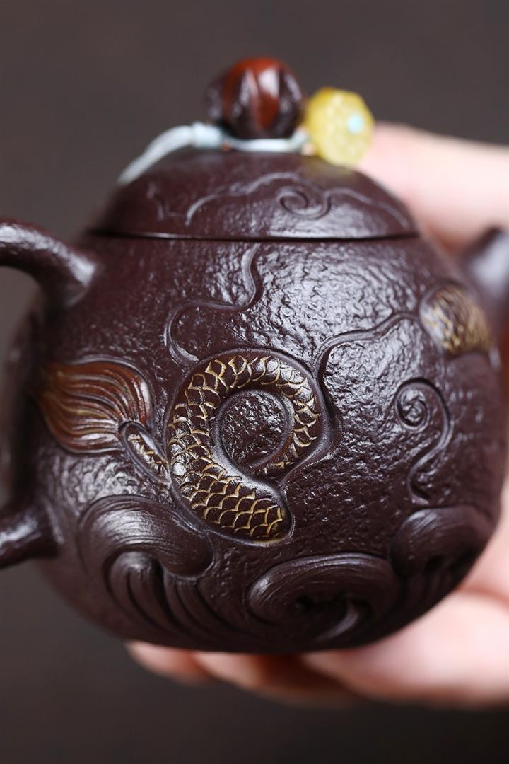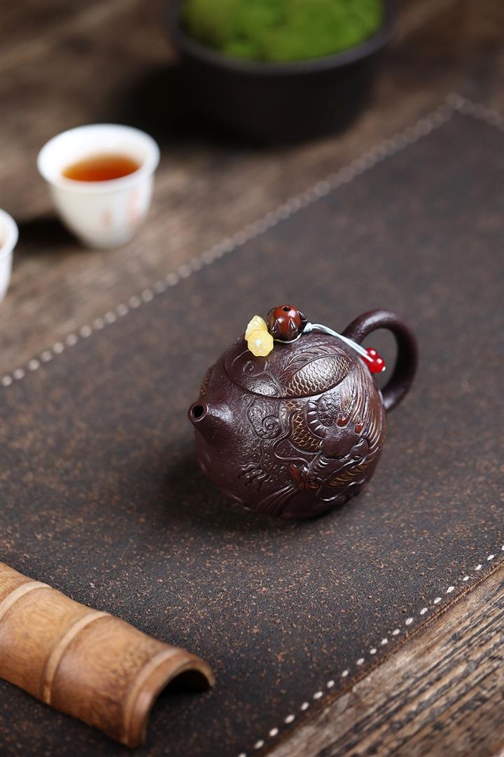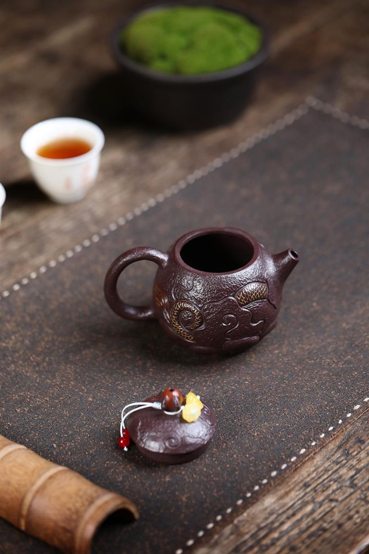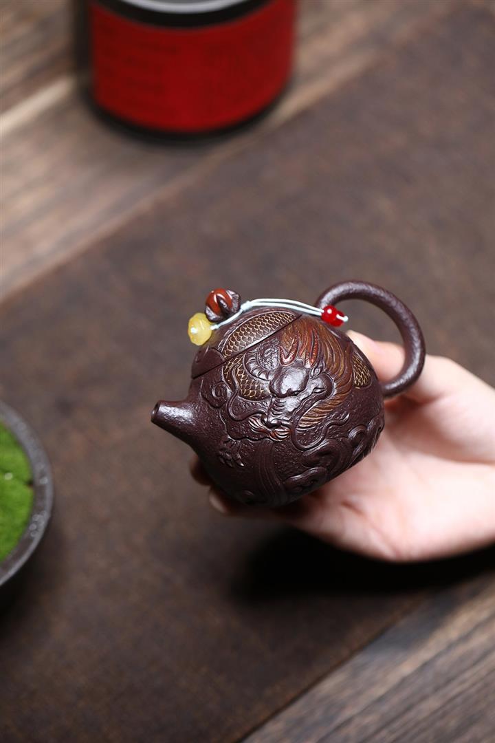 原礦紫玉金砂手工潛龍戲珠茶壺POT6730