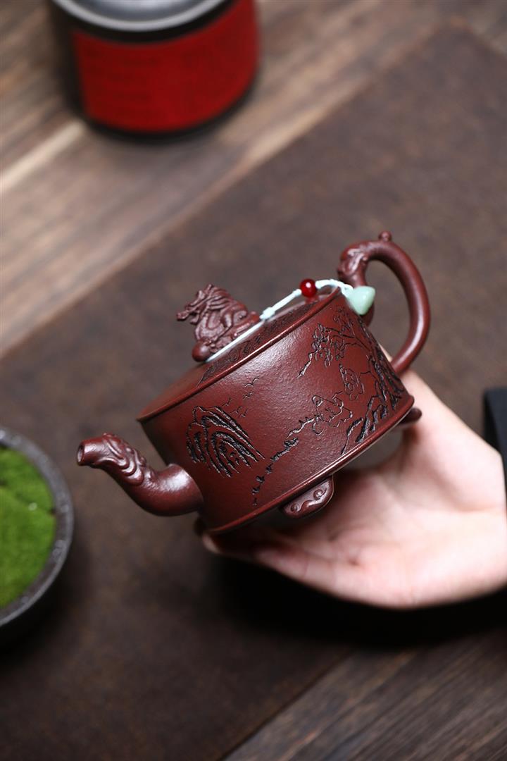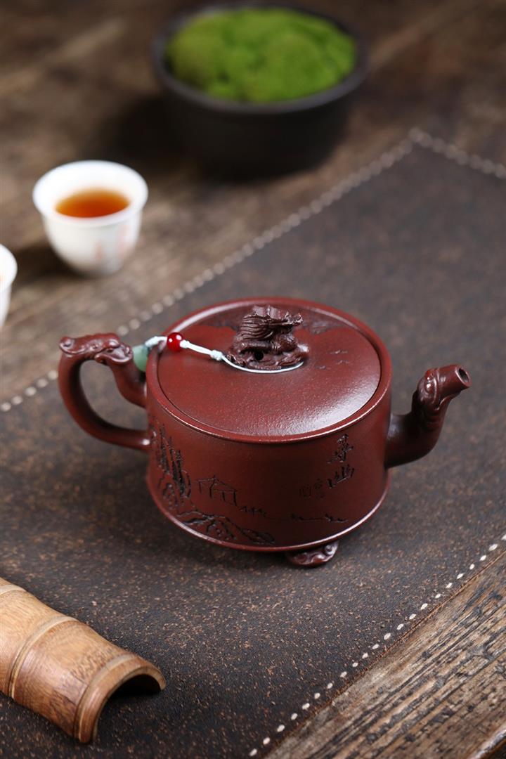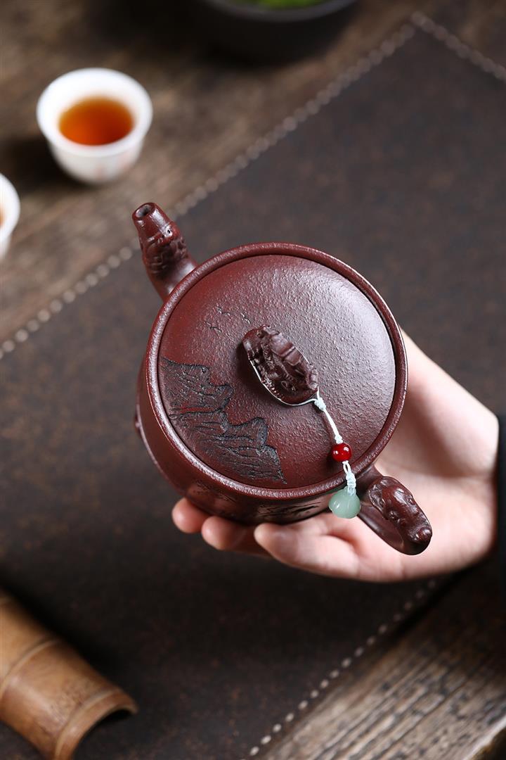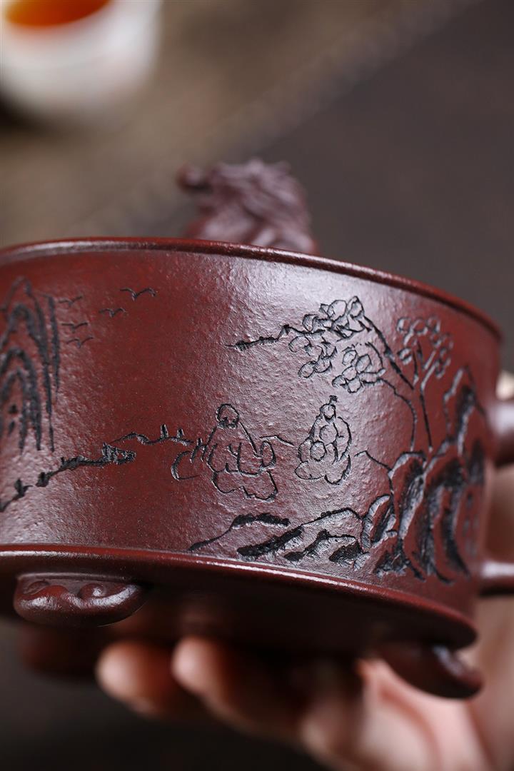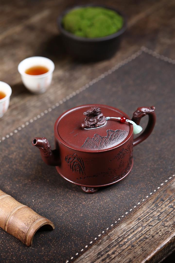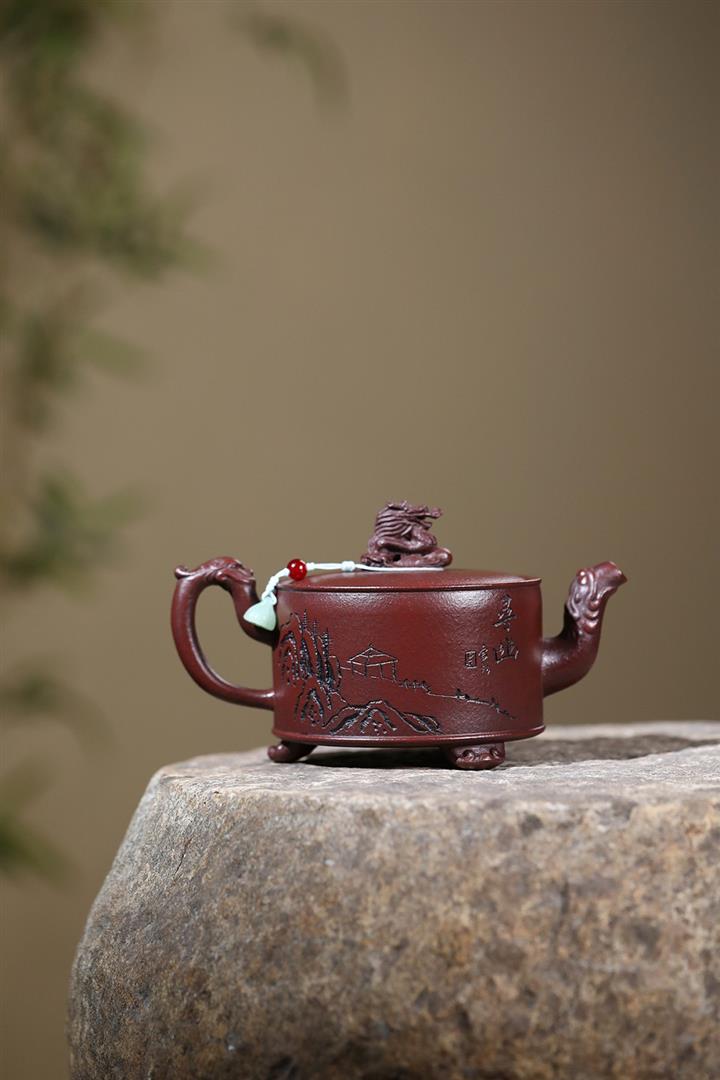 原礦鐵血紅砂手工三足龍尊茶壺POT6733