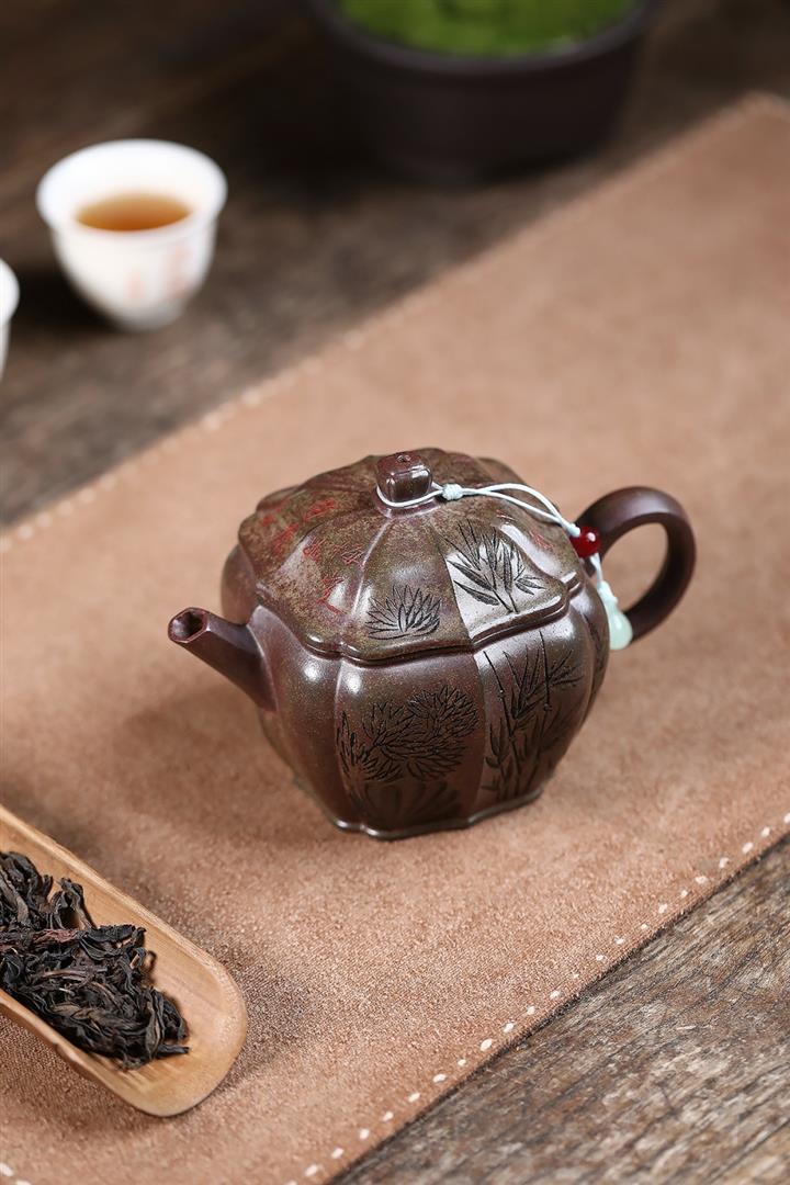 原礦紅降坡手工竹芽飄香茶壺POT6744