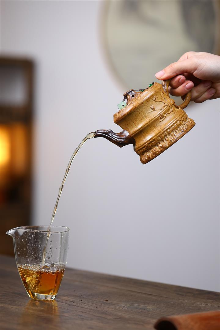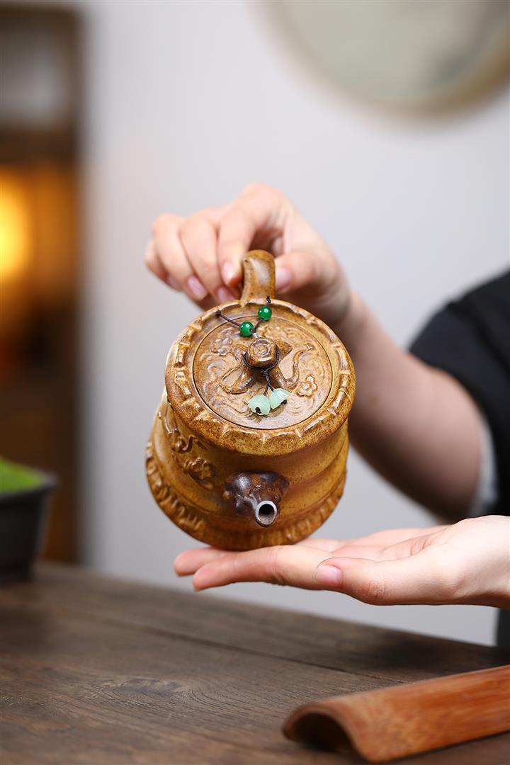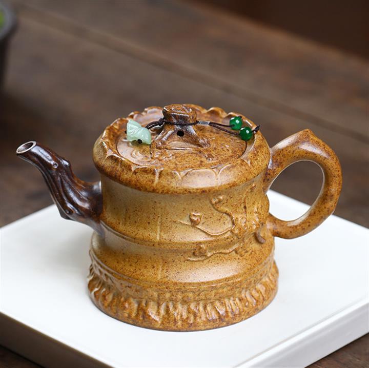 原礦龍骨金砂高溫柴燒竹筒紫砂壺POT6735