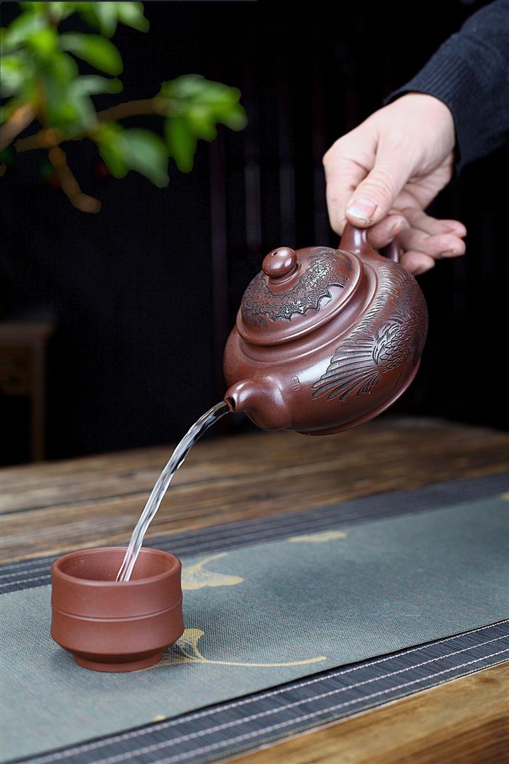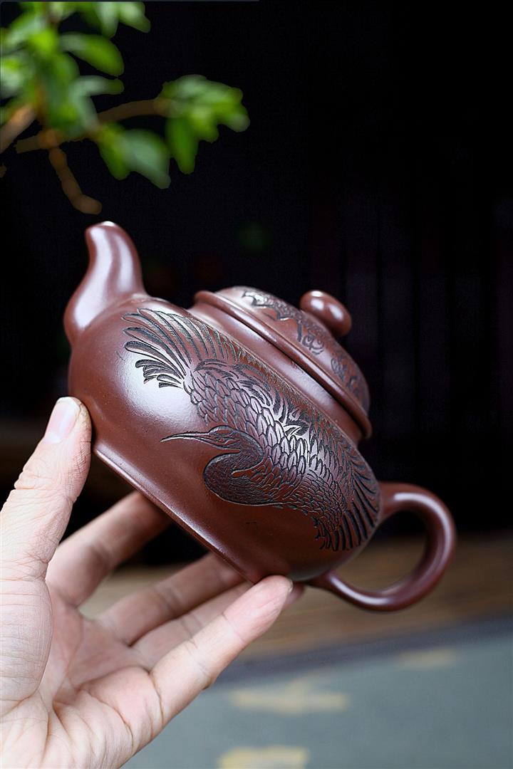 原礦紫泥手工松鶴仙鶴延年茶壺POT6745