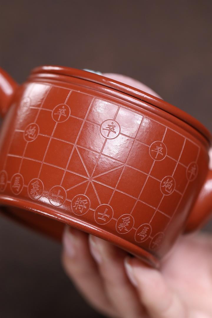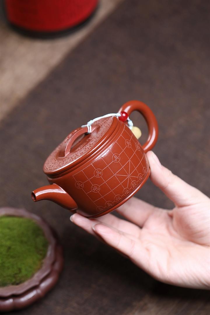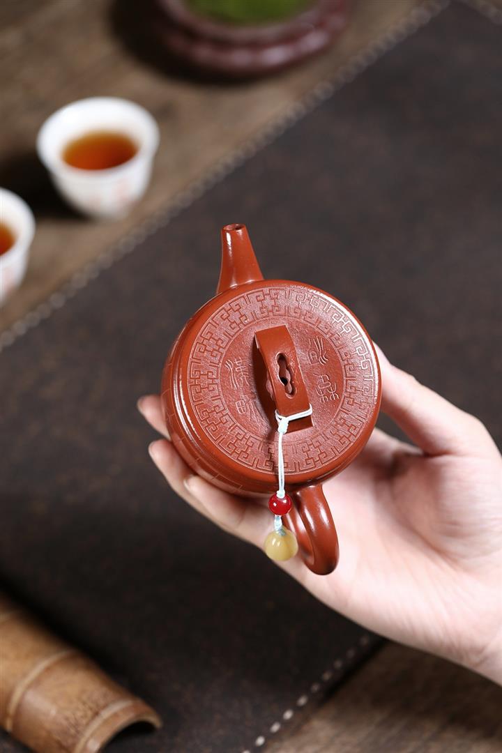 原礦龍血砂手工側把扁腹茶壺POT6750