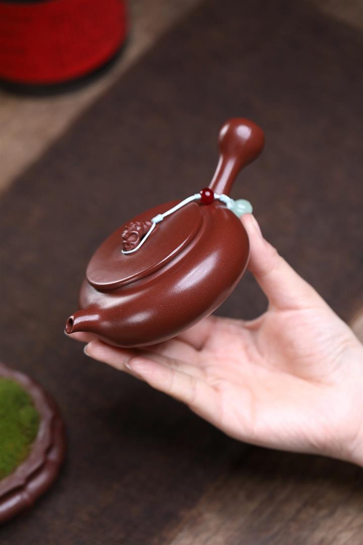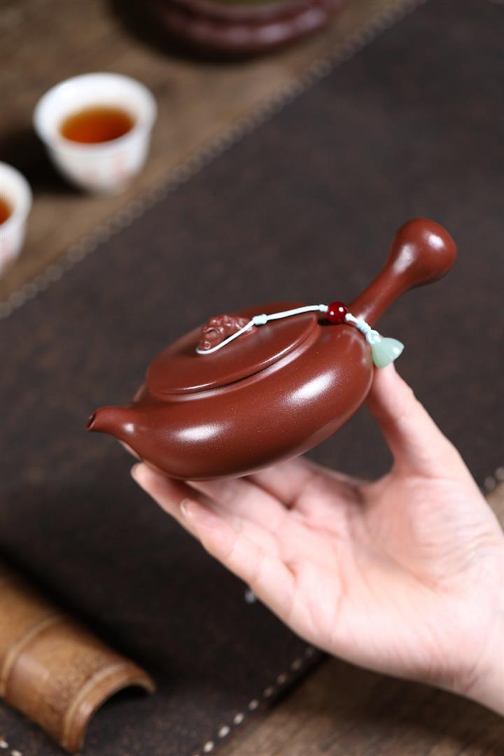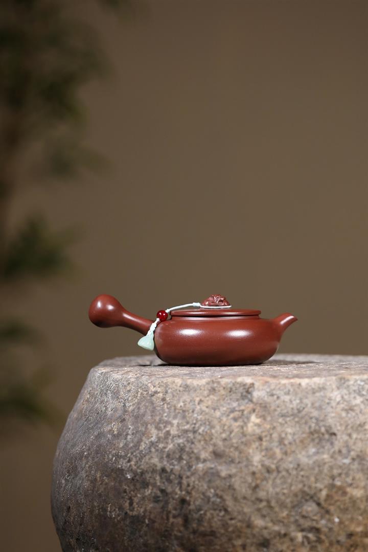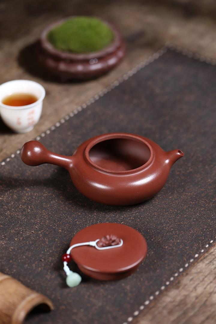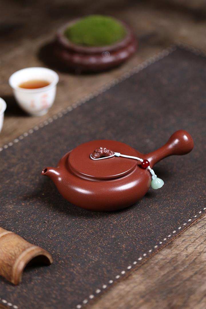 原礦龍血砂手工側把扁腹茶壺POT6750