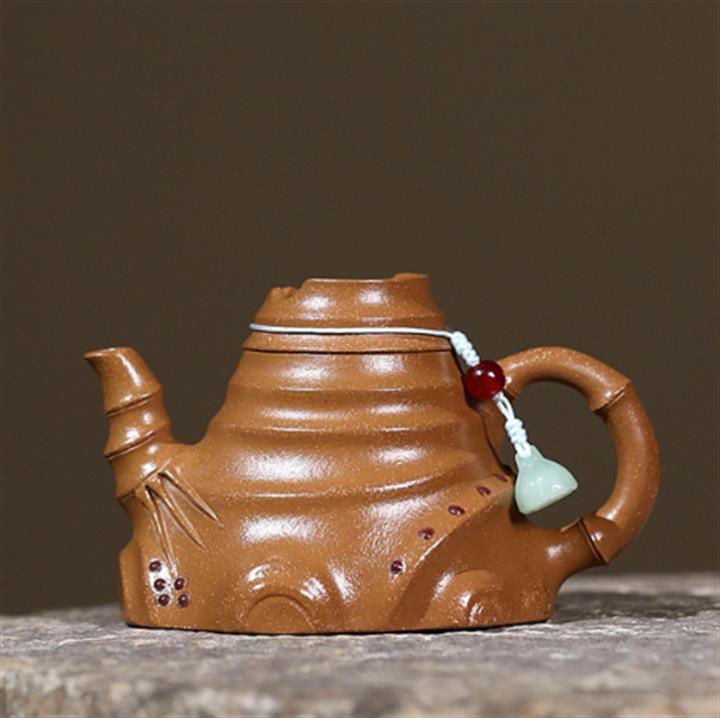 原礦綠泥手工刻繪竹影秦權炮嘴茶壺POT6751