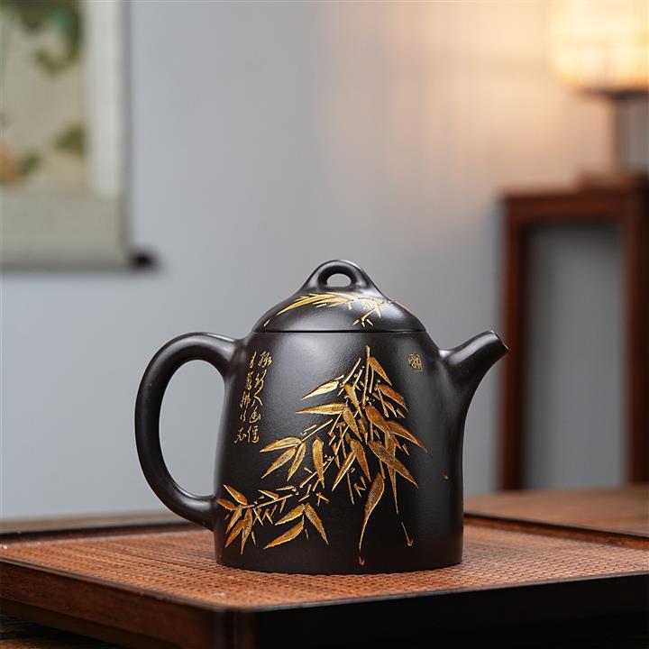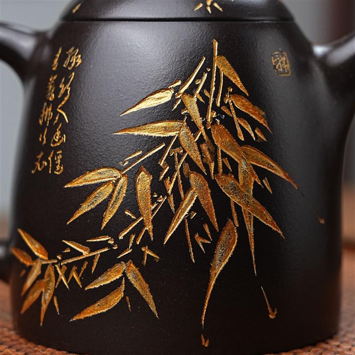 原礦冷黃金純手工刻繪周盤壺POT6758
