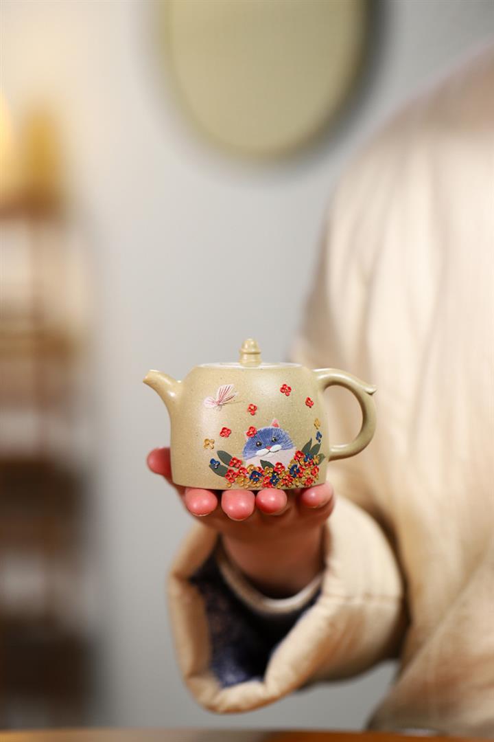 原礦紫朱泥手工描金漁翁茶壺POT6764