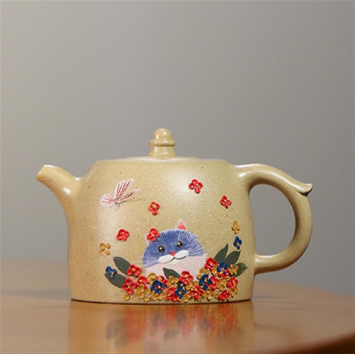 【泥料特點】砂土氣重,似淳實農民,日久使用,漸露鋒芒,養成變化甚大,溫潤莊重。線條優美自然,嘴把搭配協調,身桶配上細長的把搭配,更顯優雅