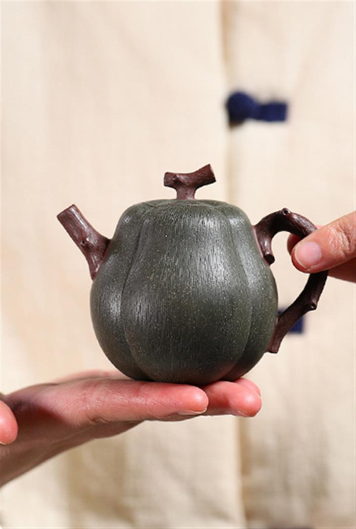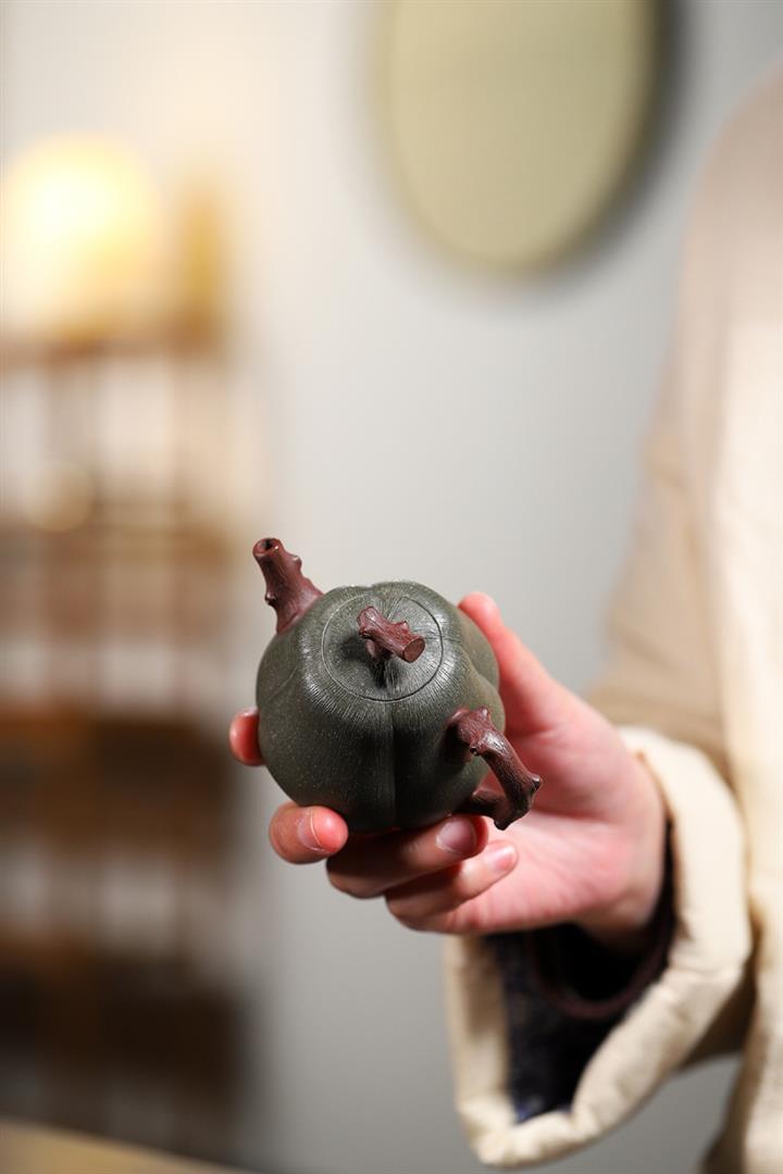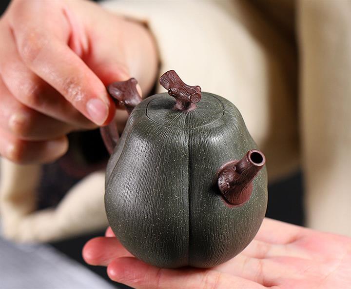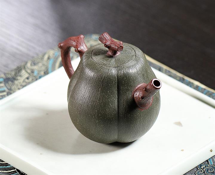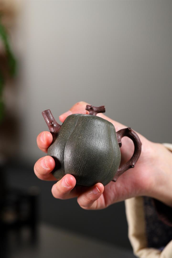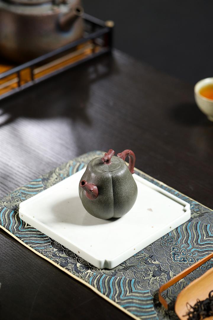 【簡介】梨瓜壺,因造型類似梨而得名,是一款非常經典的壺型。作品壺體勻稱,器身飽滿,。梨莖鈕微彎,別致可愛,壺把半圓弧彎曲自然,線條流暢優美。造工一絲不茍,整體比例協調,造型端莊俊雅卻不失靈動,為難得上佳茗壺。吃梨,清心,品茗更清心靜心!