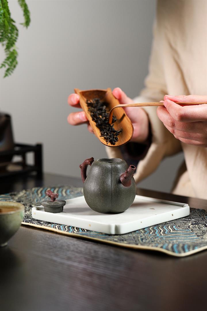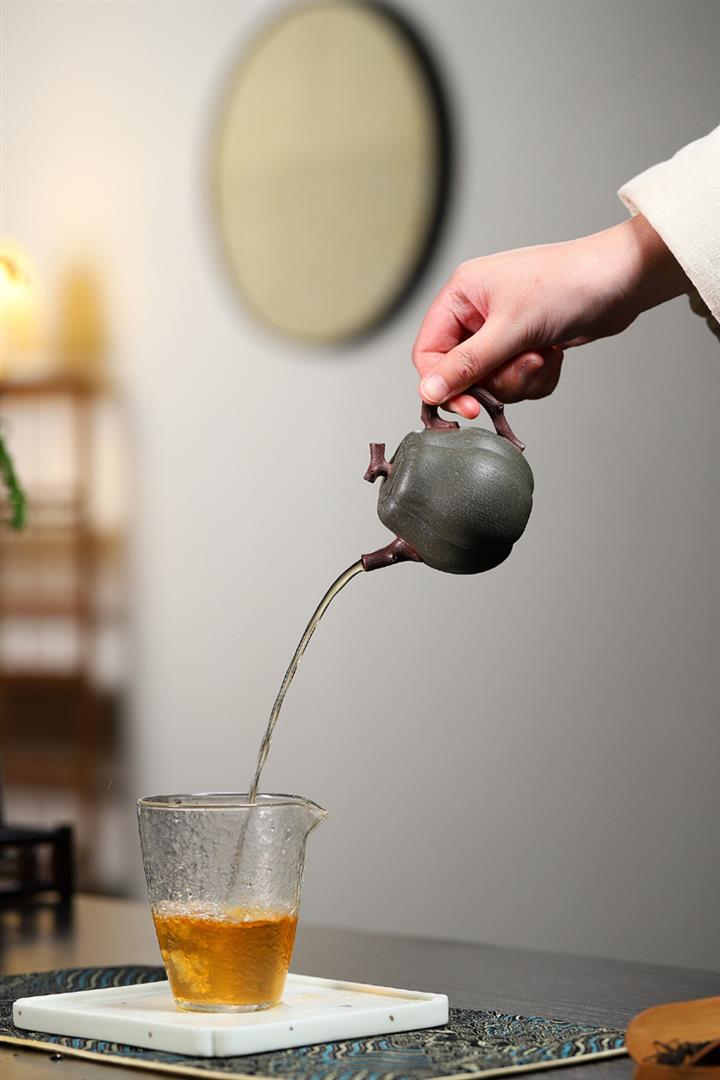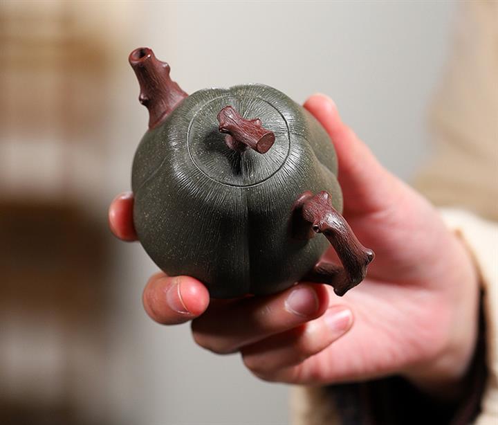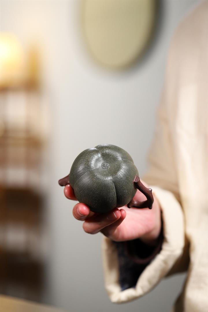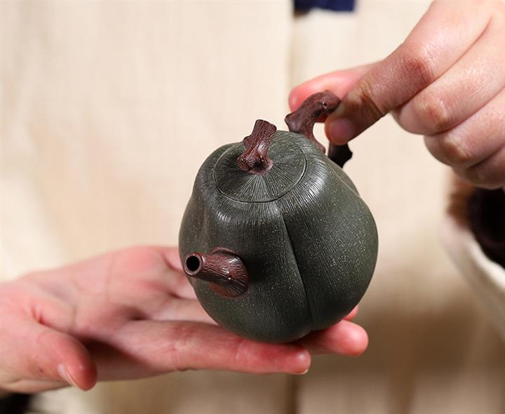 【簡介】梨瓜壺,因造型類似梨而得名,是一款非常經典的壺型。作品壺體勻稱,器身飽滿,。梨莖鈕微彎,別致可愛,壺把半圓弧彎曲自然,線條流暢優美。造工一絲不茍,整體比例協調,造型端莊俊雅卻不失靈動,為難得上佳茗壺。吃梨,清心,品茗更清心靜心!